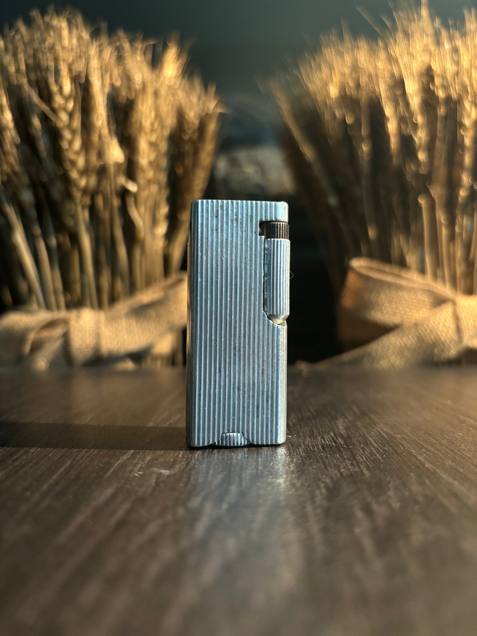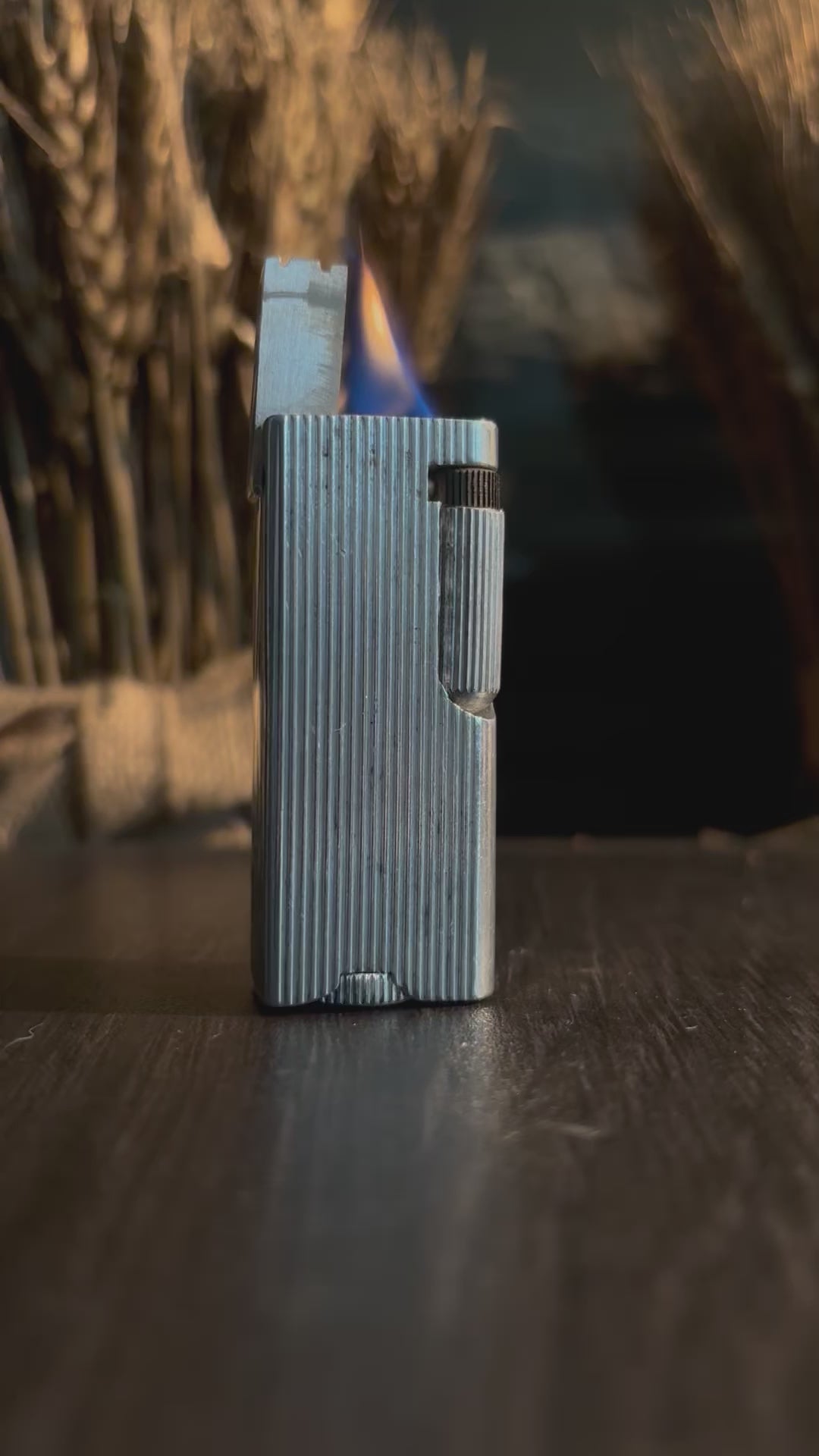 Revel in the nostalgia of the 1940's with this vintage aluminum block lighter. Featuring a stunning Art Deco design, this lighter was produced during World War II when steel was scarce. Perfect for history lovers and lighter enthusiasts alike!