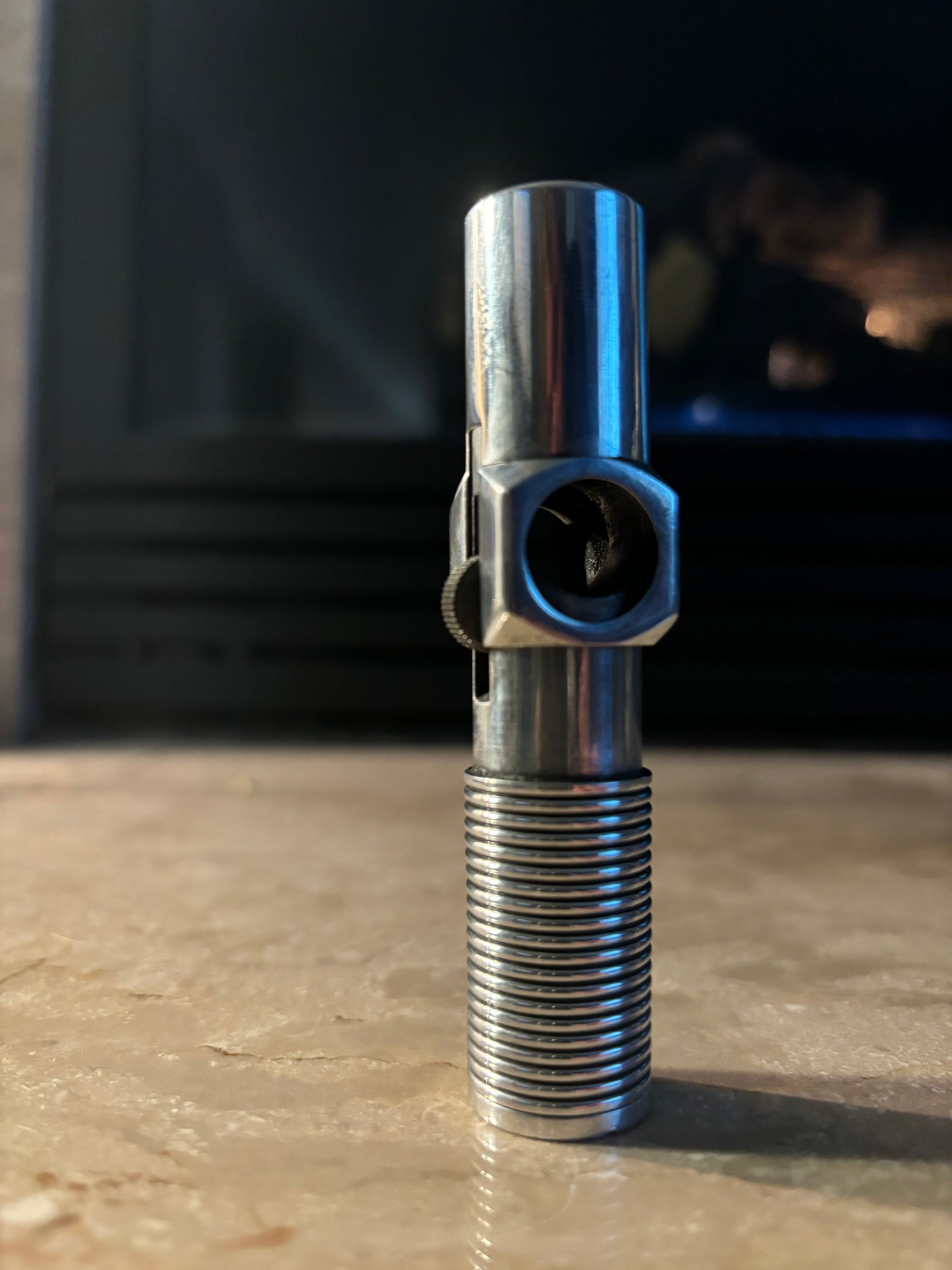 The 1940's Nimrod Pipe Lighter offers a unique design that harkens back to the pipe smoking era of the mid-century. This vintage lighter not only adds character to your pipe smoking experience, but also serves as a functional and stylish addition to your collection.