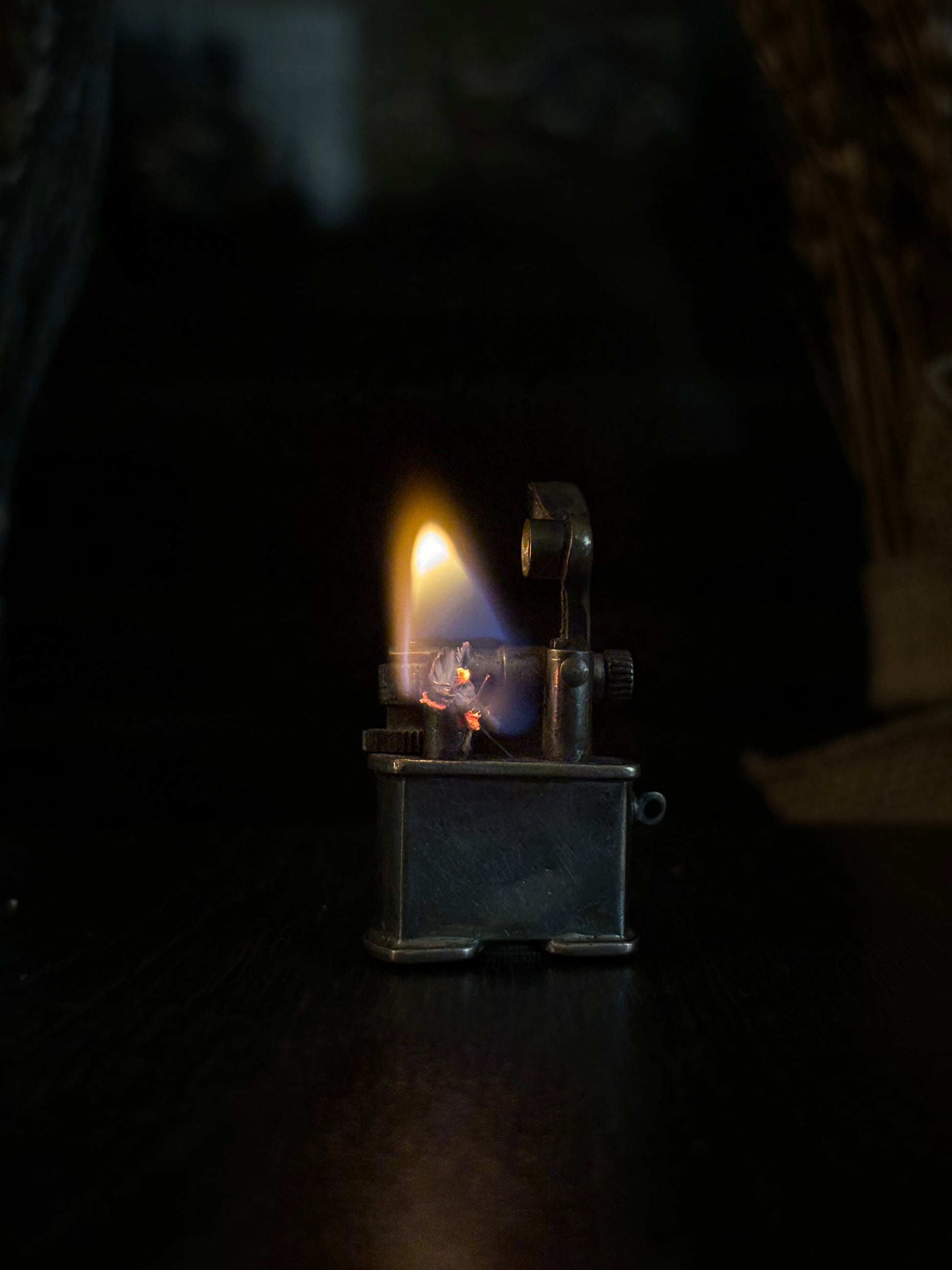 "Discover the history of vintage lighters with our 1950's Golden Wheel Mini Lift Arm Lighter. Handcrafted by the renowned Golden Wheel Lighter Company, this compact lighter combines timeless design with reliable functionality. A must-have for lovers of all things vintage. Spark your passion today!"