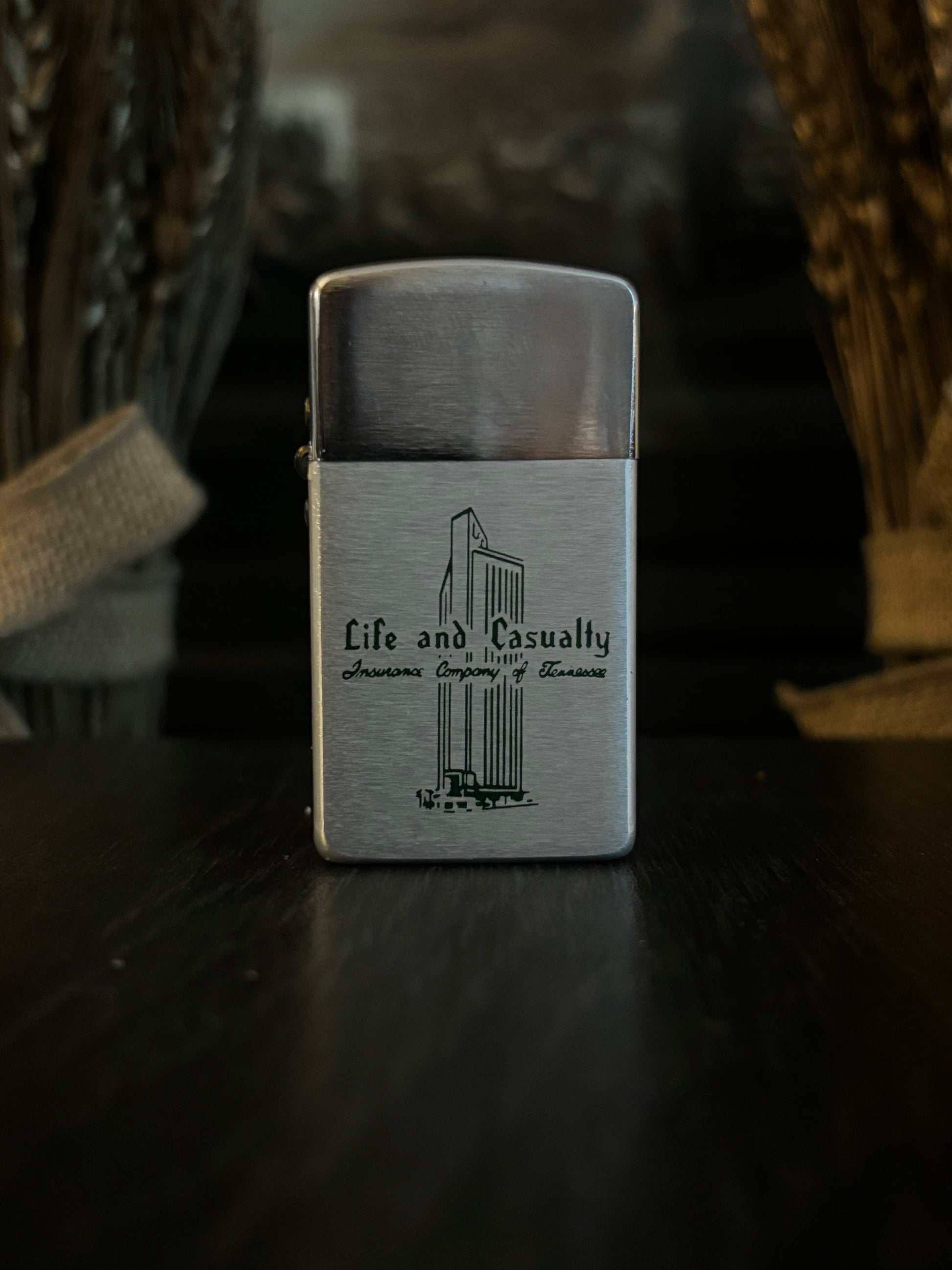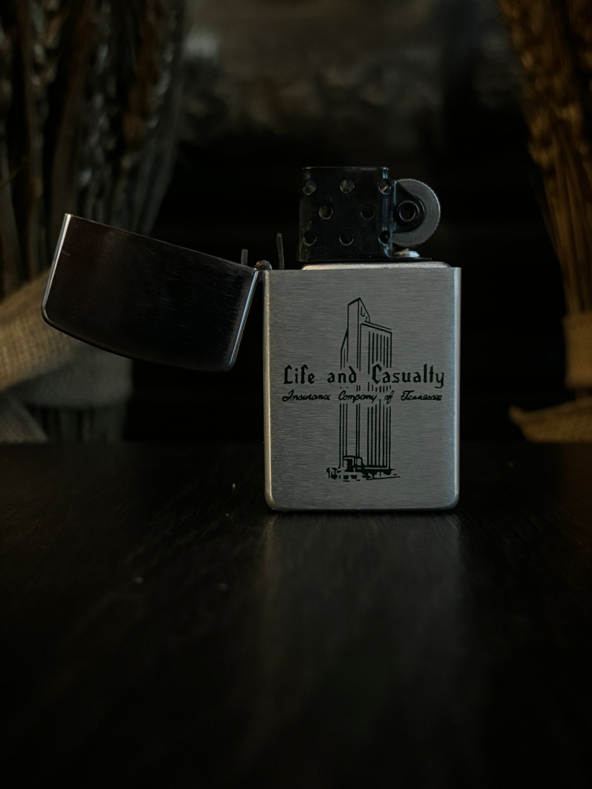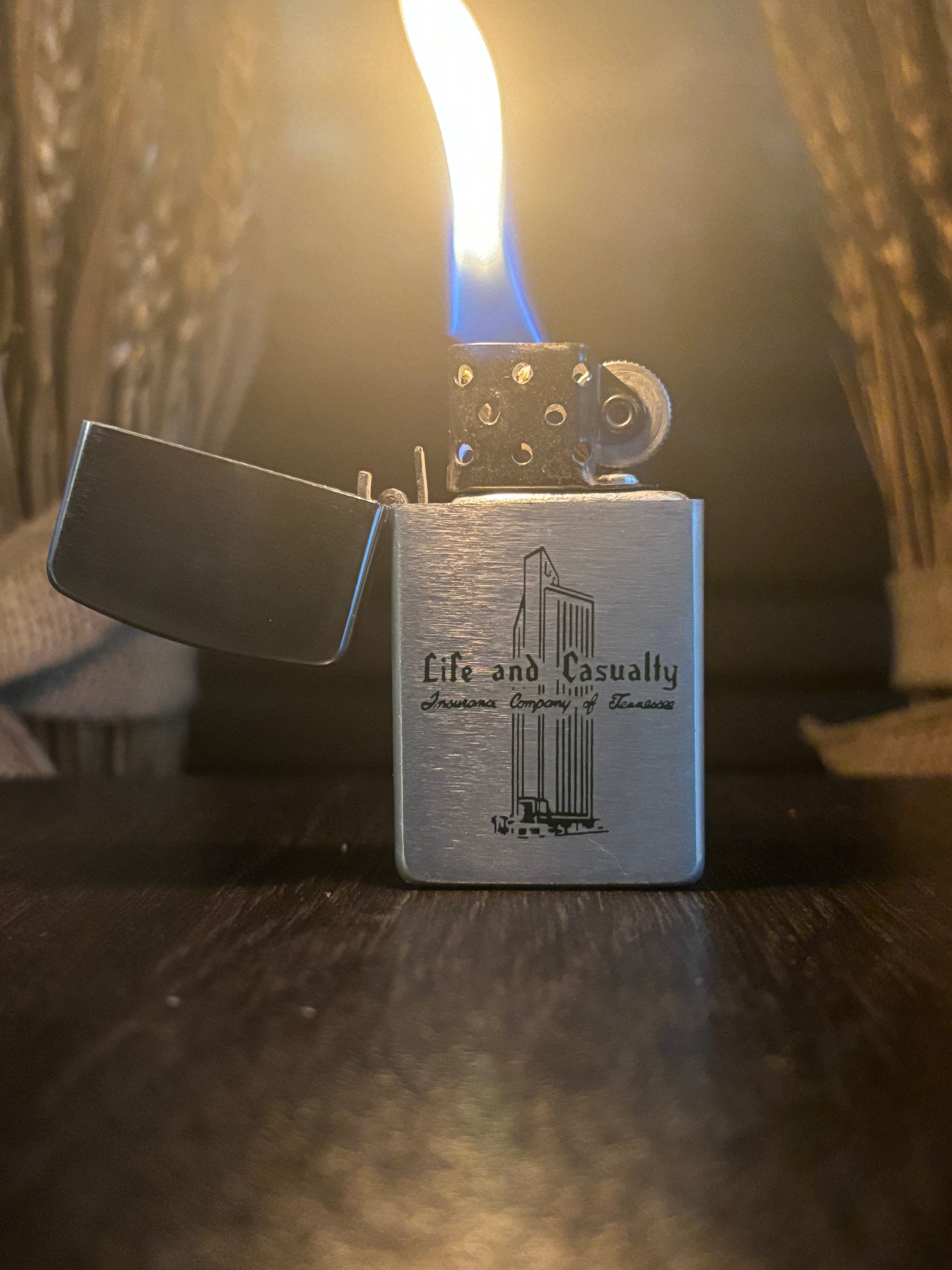 Experience a piece of history with our 1950's Life and Casualty Insurance Lighter! Crafted by the Indiana-based company, this vintage lighter is a unique addition to any collection. Enjoy its old-fashioned charm and unique backstory.