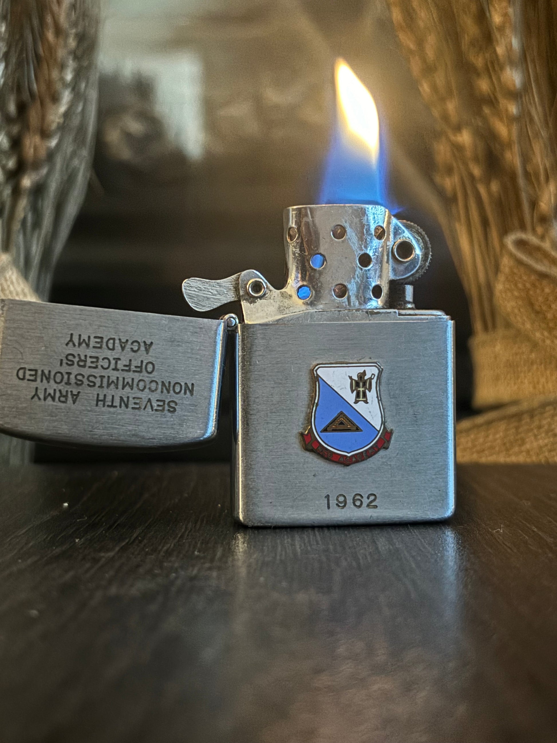 Own a piece of history with the 1962 Seventh Army NCO Academy Lighter. This vintage lighter, featuring the iconic Seventh Army insignia, is a must-have for collectors and history enthusiasts alike. Made in 1962, this piece captures the essence of the US military and the spirit of the NCO academy. A unique and valuable addition to any collection.