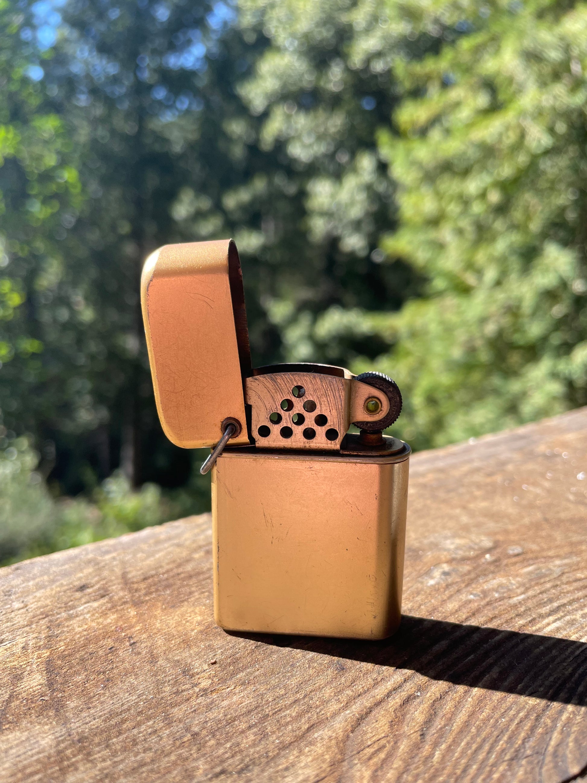 The 1970s gold-toned Storm Master lighter epitomizes style and reliability. Its sleek design exudes sophistication, while its robust construction ensured dependable performance. With its distinctive golden hue and refined craftsmanship, it was a statement accessory for those who appreciated both style and functionality.
