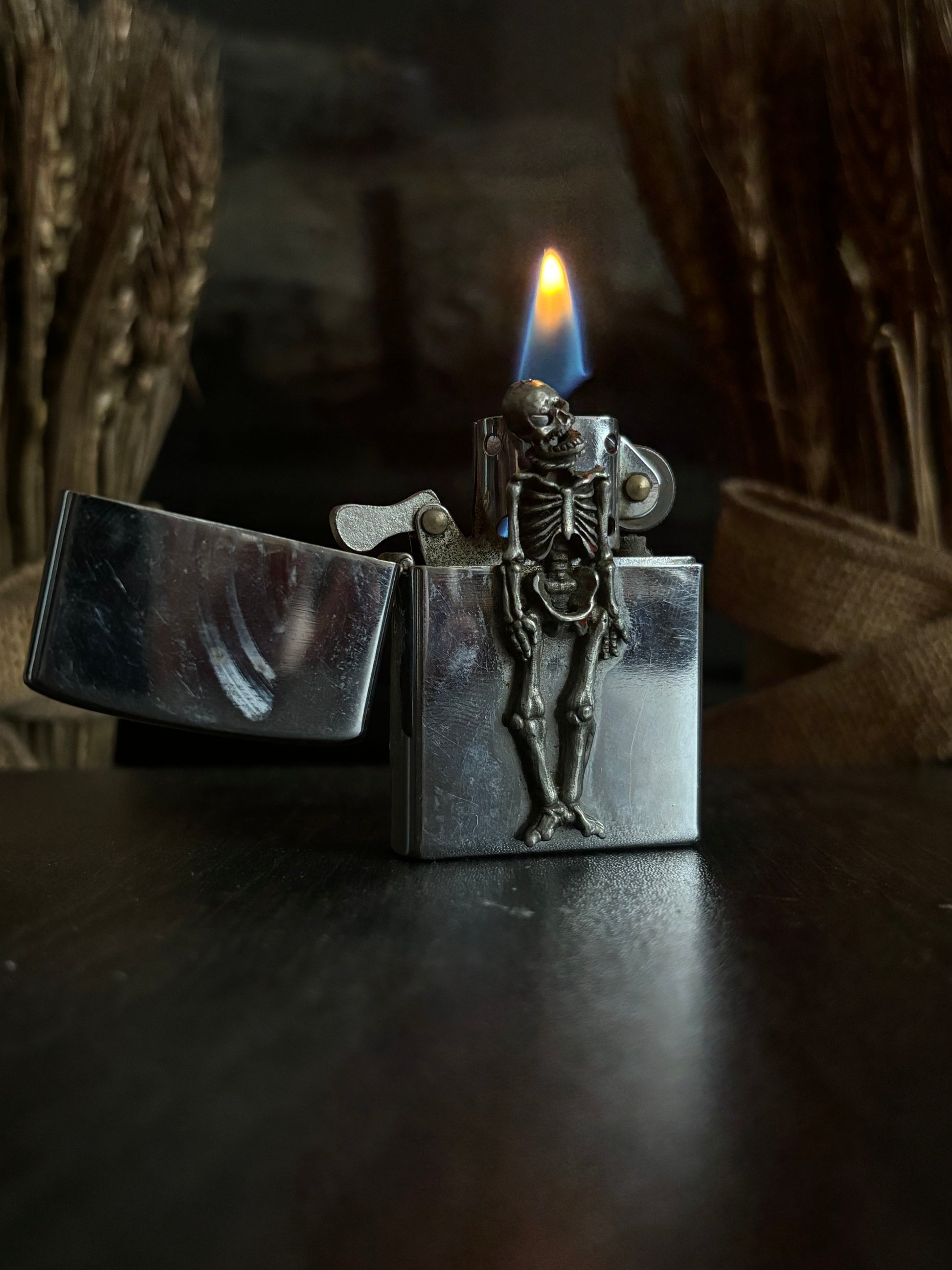 Experience the nostalgia with our 1990’s Skeleton Novelty Flip Top Lighter! A must-have for vintage enthusiasts, this sleek lighter is perfect for the spooky season. With a beautiful flame, it's sure to impress and add a touch of history to your collection.