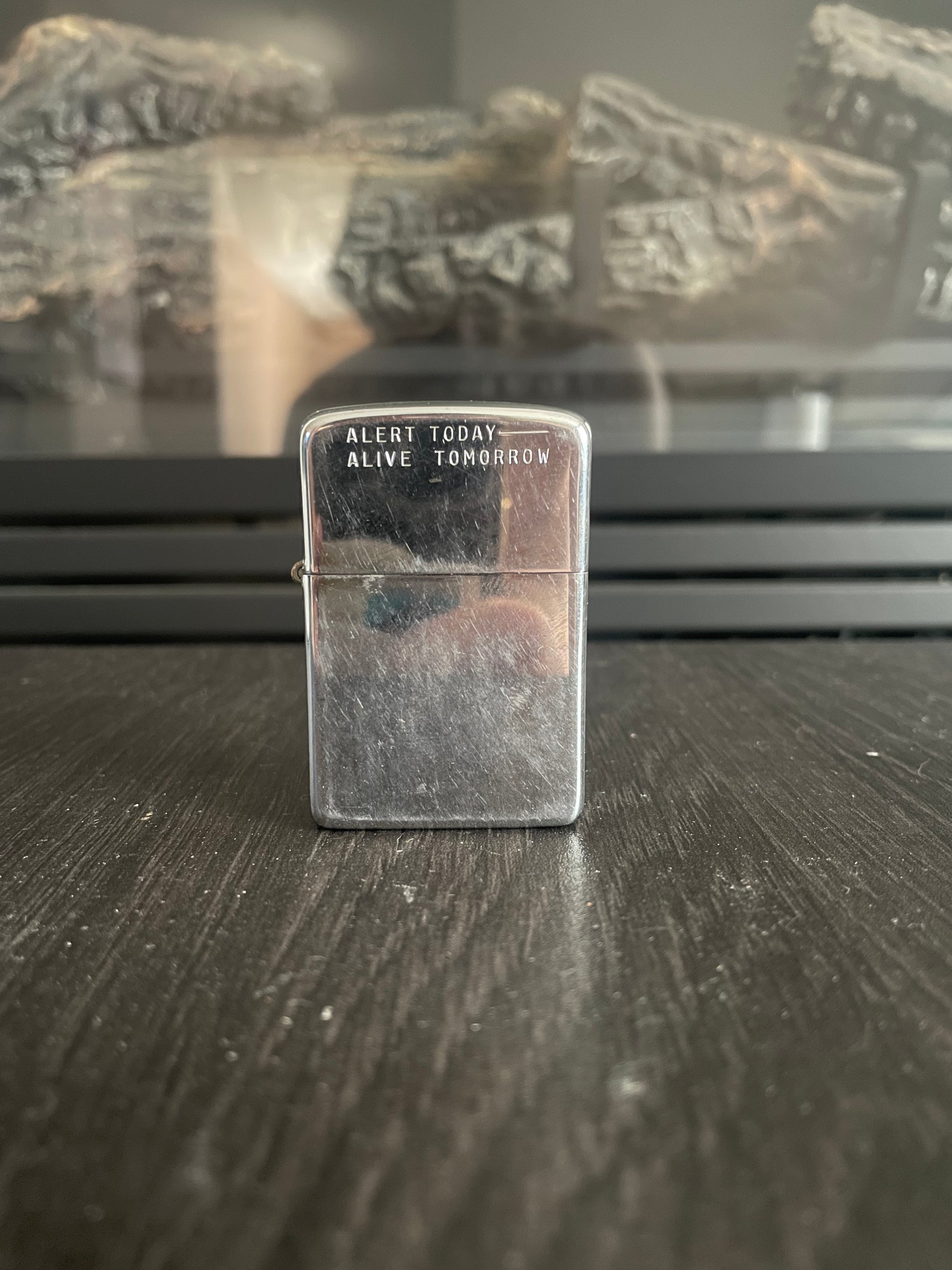 This is an exciting piece of history! This historical Park branded lighter reflects a traveling museum exhibit that traveled across the country from 1945-1965. This exhibit explored how the country was living with nuclear threats during this time.