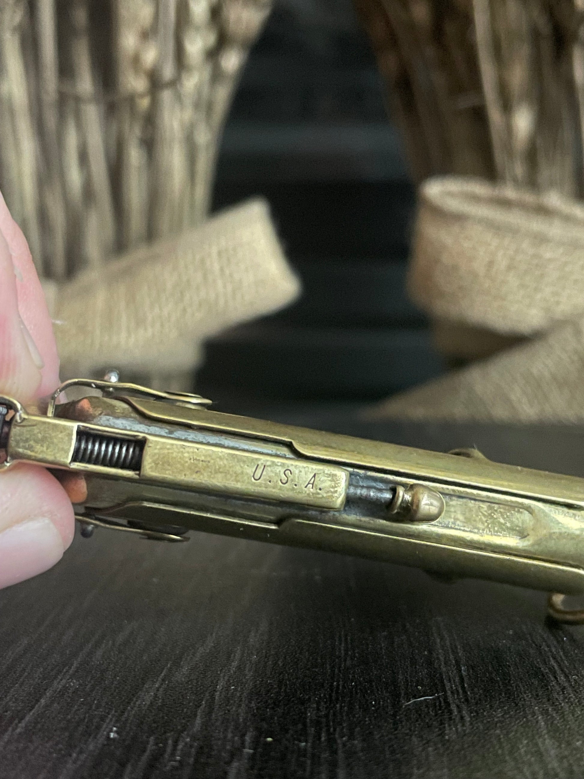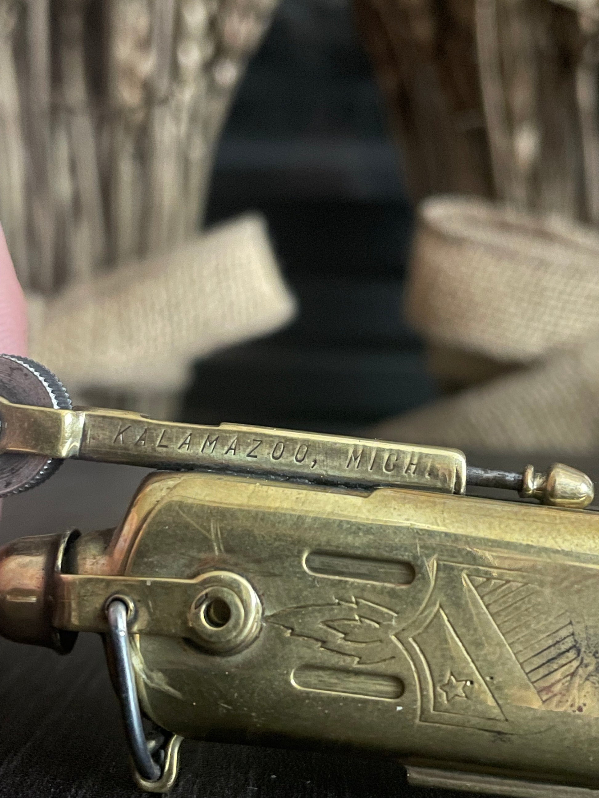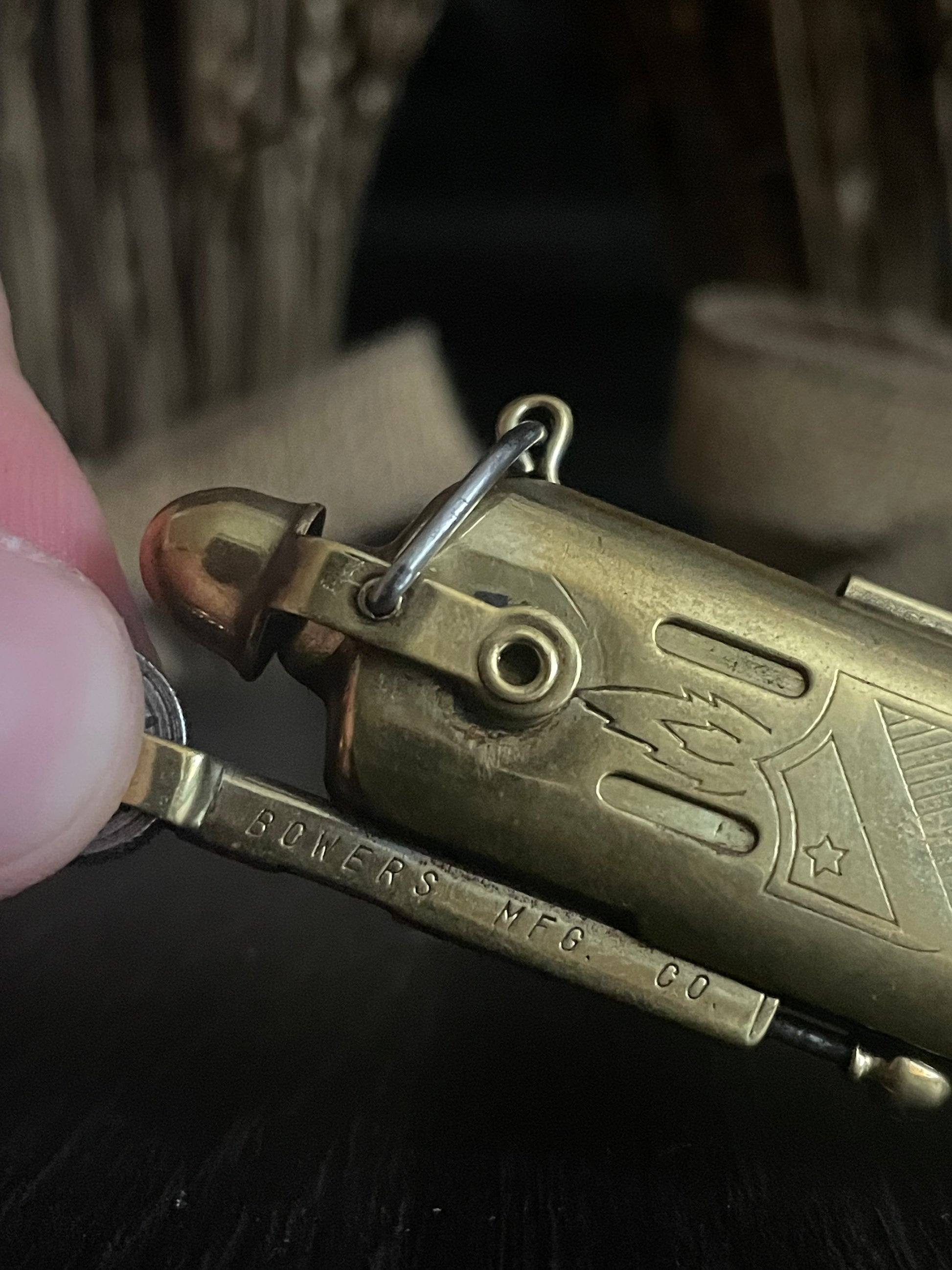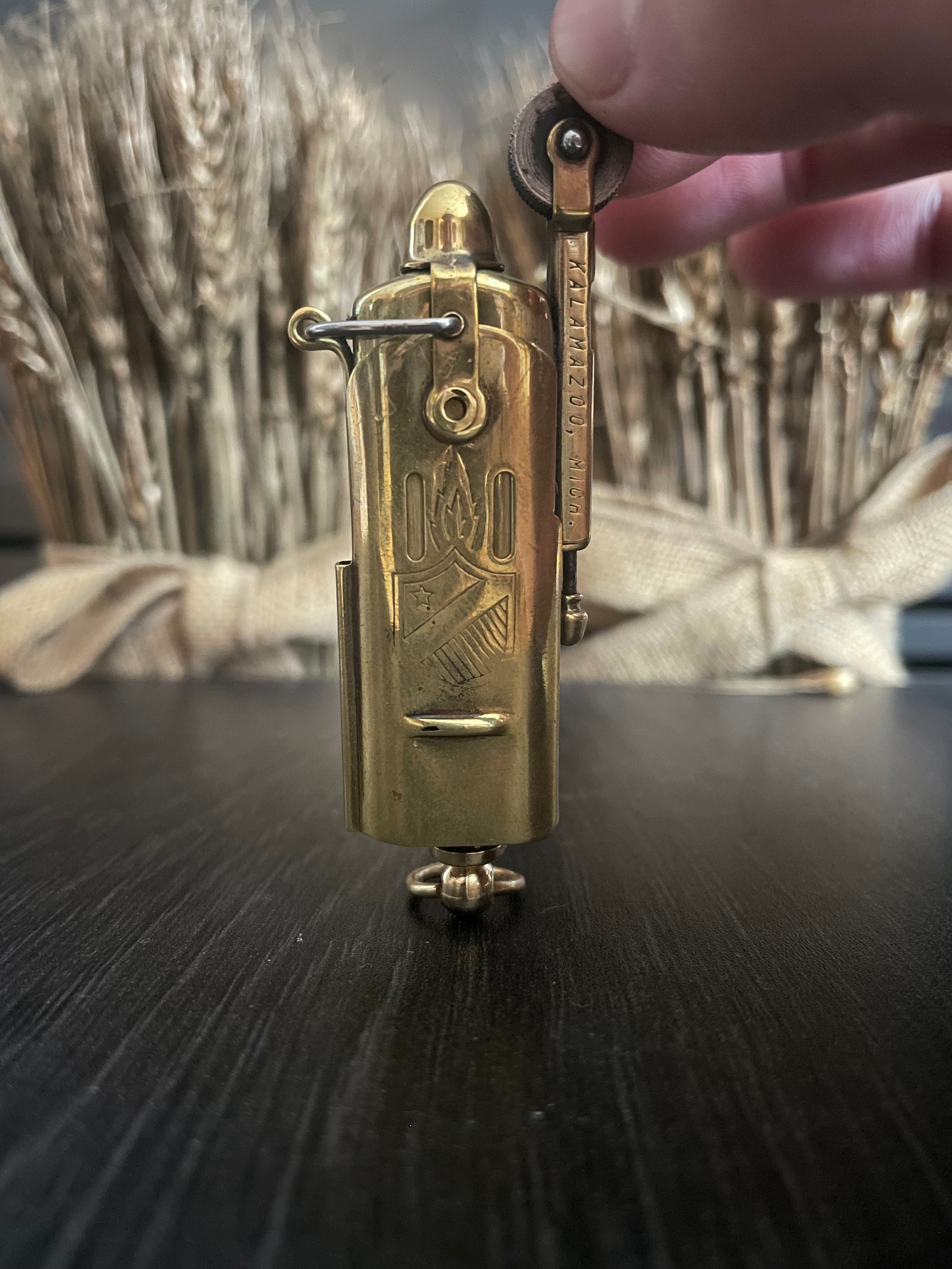 This vintage Bowers Kalamazoo Trench Lighter is a beloved classic, perfect for collectors who appreciate its historical significance. Made in Michigan, USA and used in WW2, it features all its original parts and works flawlessly. Don't miss your chance to own this one-of-a-kind piece, as only one is available.