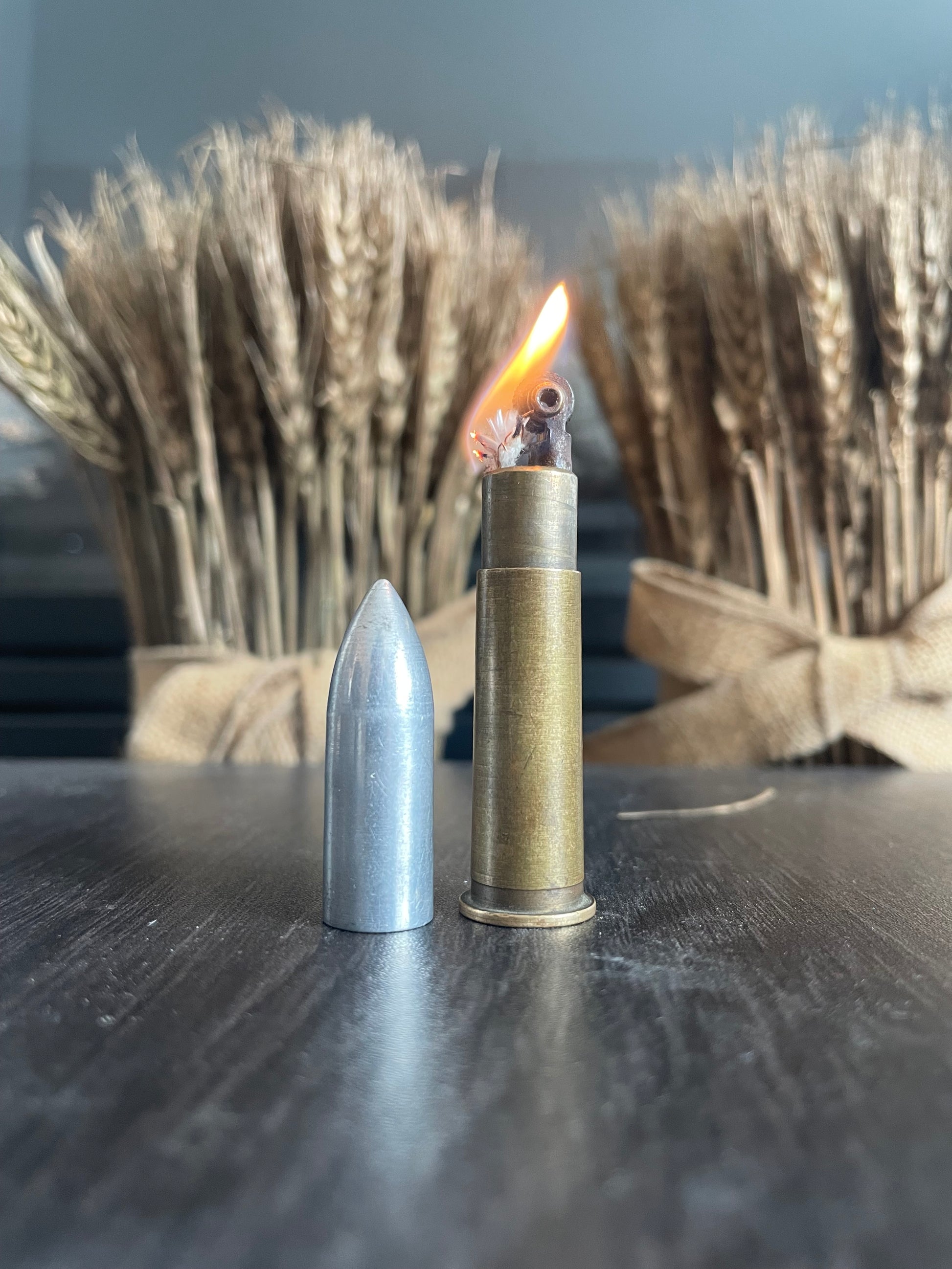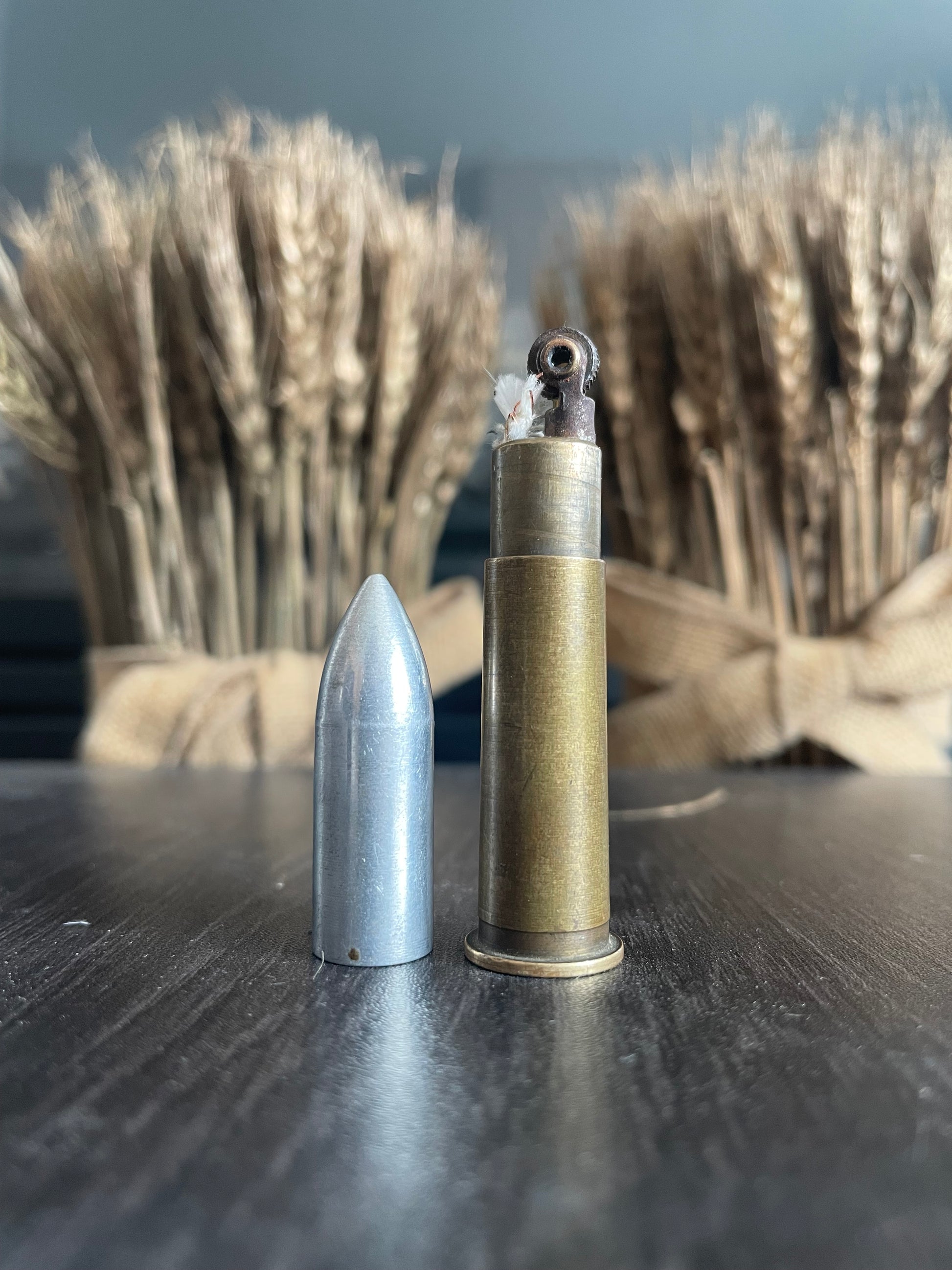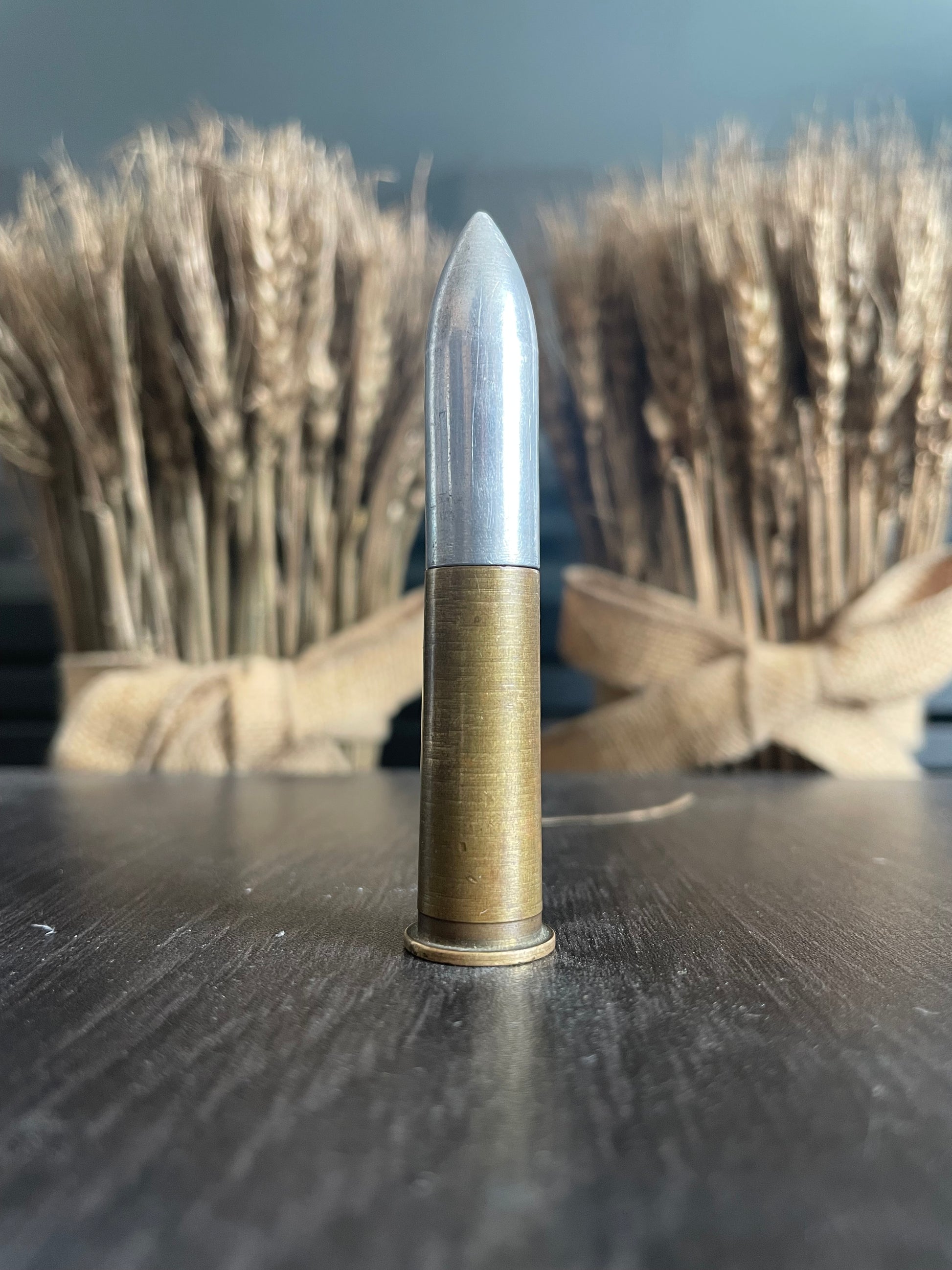 Own a piece of history with this Bullet "Trench Art" Lighter. Made by servicemen during WWII, these unique lighters were crafted from shell casings, coins, and other found items. Each one is a one-of-a-kind piece of art, showcasing the resourcefulness and creativity of those who made them. Bring a piece of the past into your life today.
