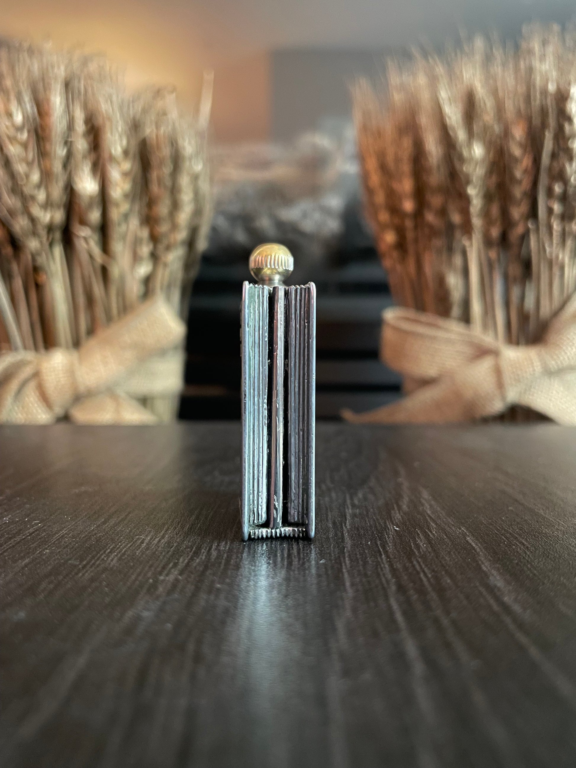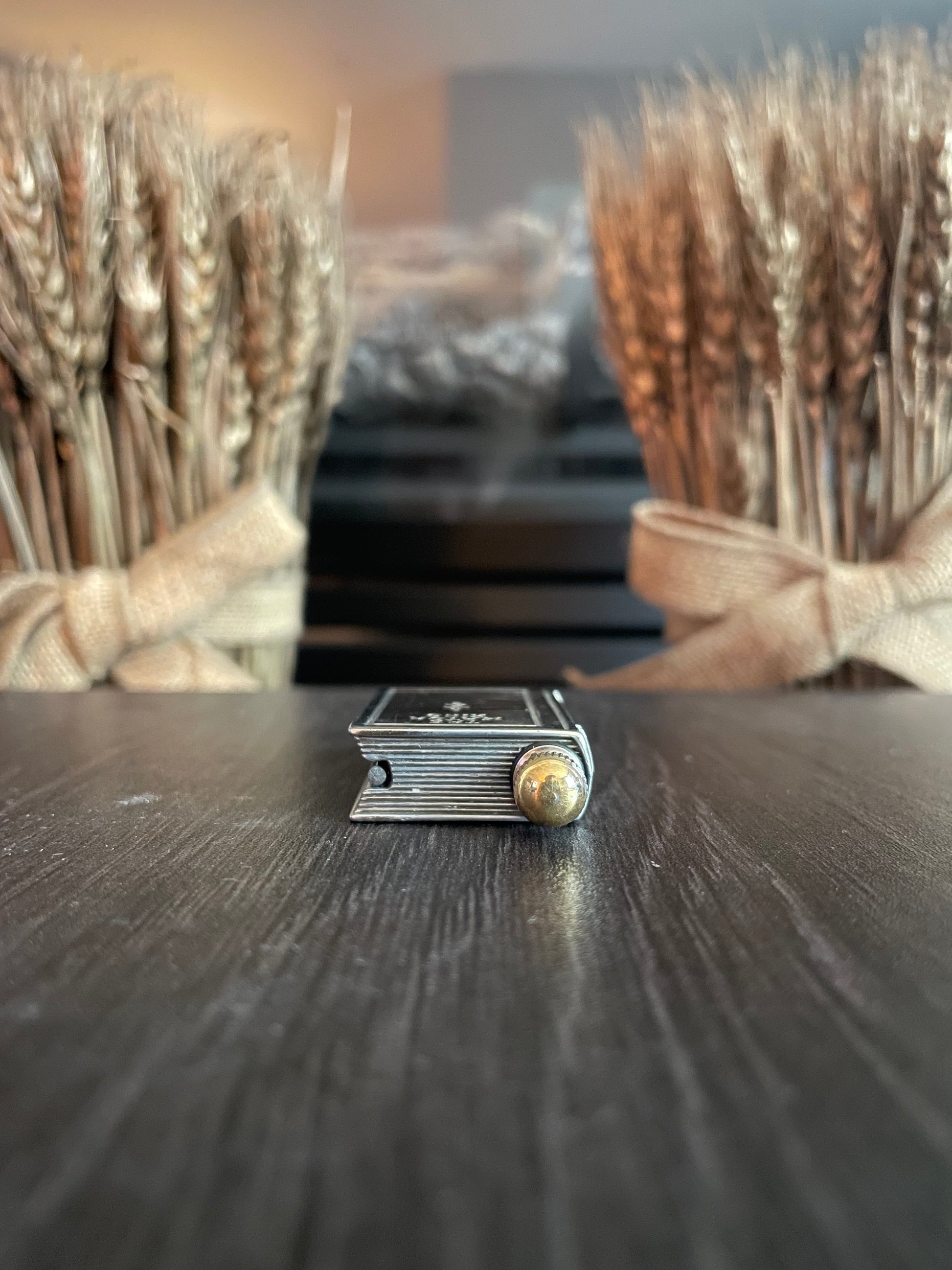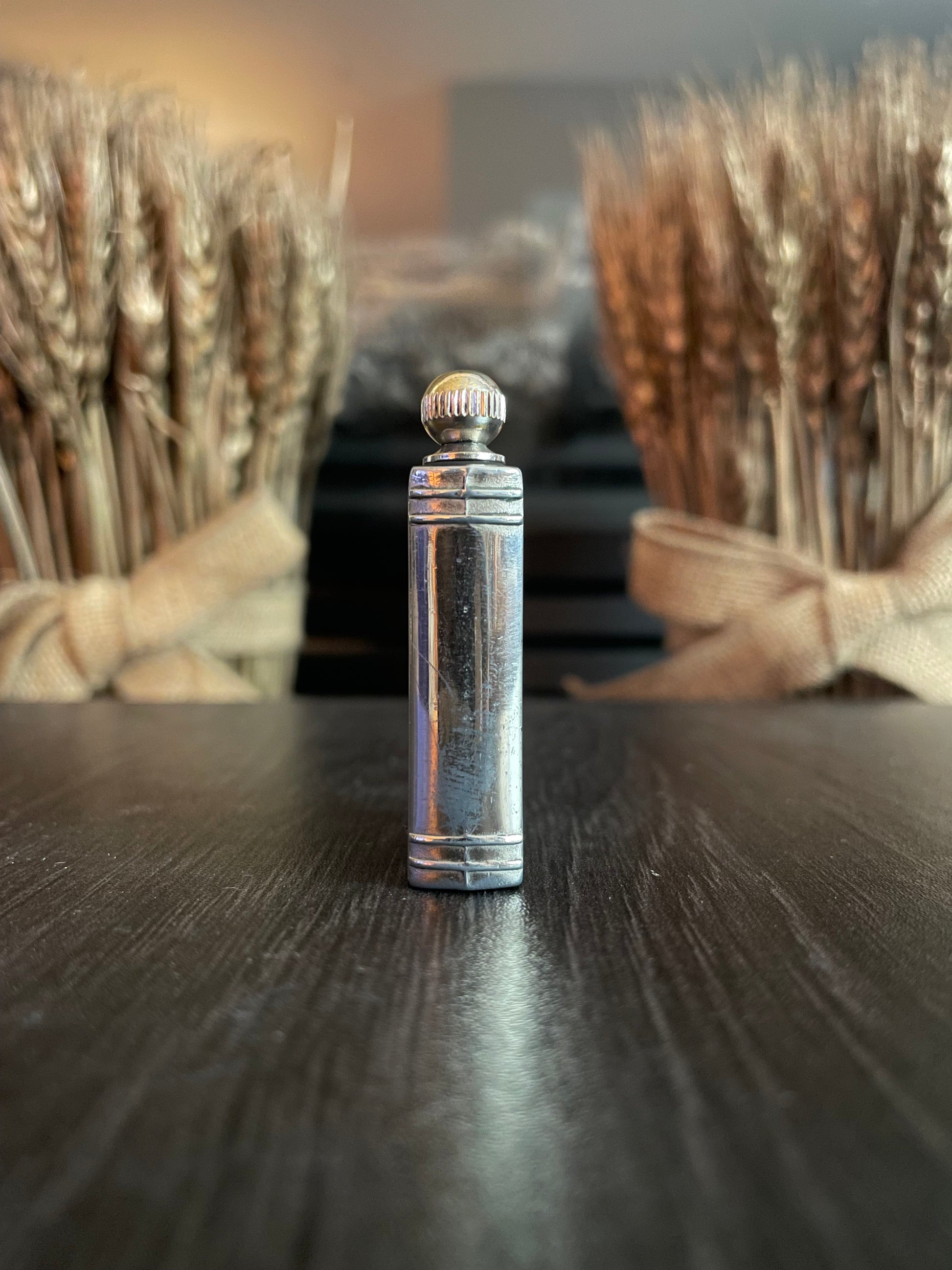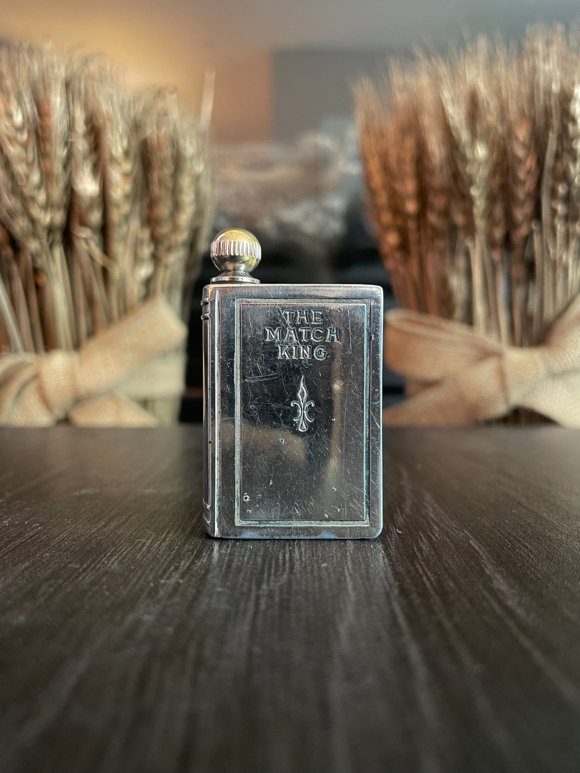 Introducing the c. 1930s The Match King Permanent Match, a true treasure for lovers of vintage lighters. Its awesome unique striking method, with a striker that unscrews from the metal casing, allows for easy lighting of the kerosene-soaked wick. Originally made in 1933 in Chicago, this instant favorite boasts a beautiful finish and design.