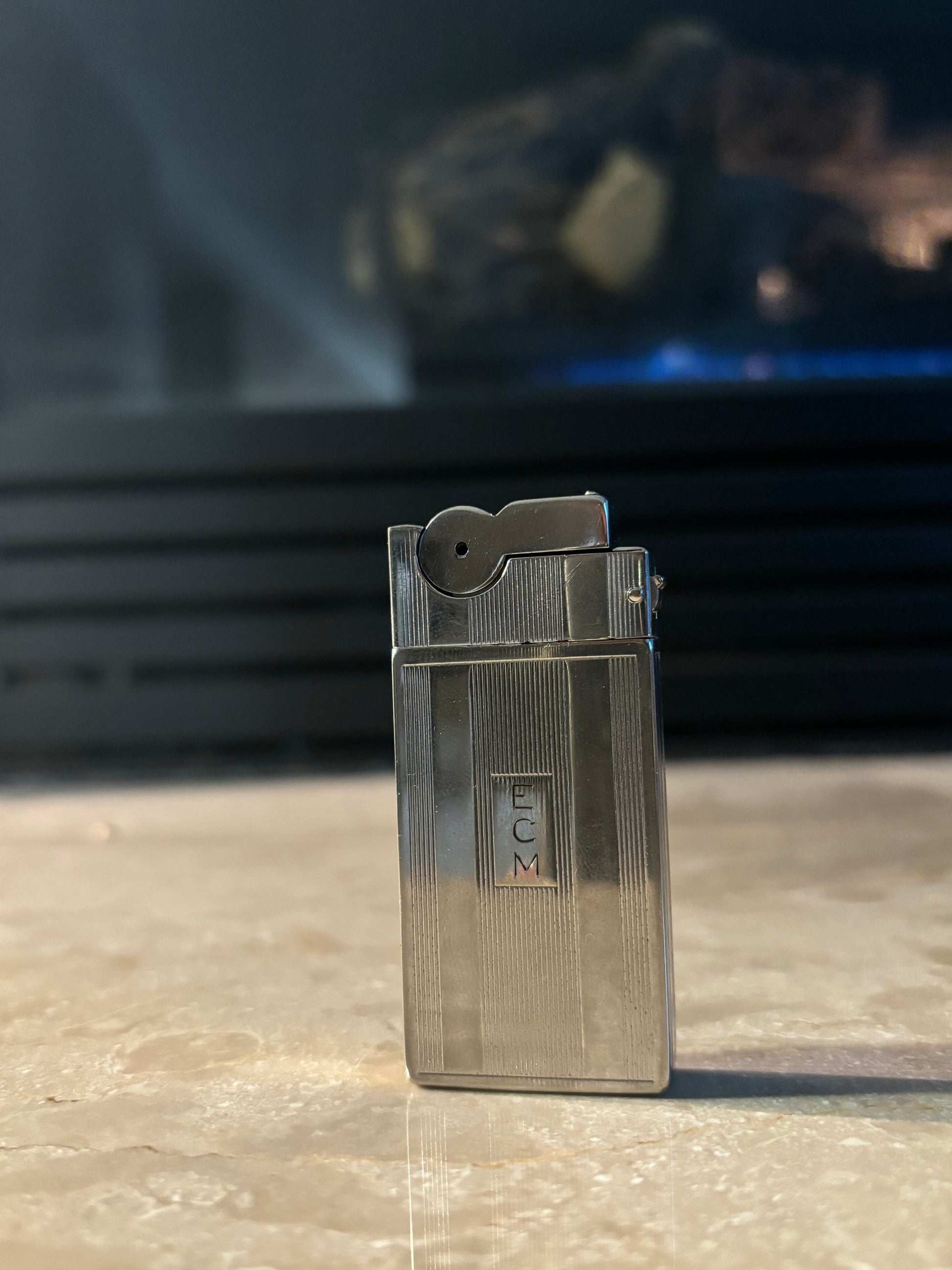 Add vintage charm to your collection with this c. 1940's ASR lighter! Made in the USA and engraved with 'E.C.M.', this lighter is both a functional tool and a unique piece of history. Perfect for any passionate collector, this lighter is sure to inspire excitement and admiration.