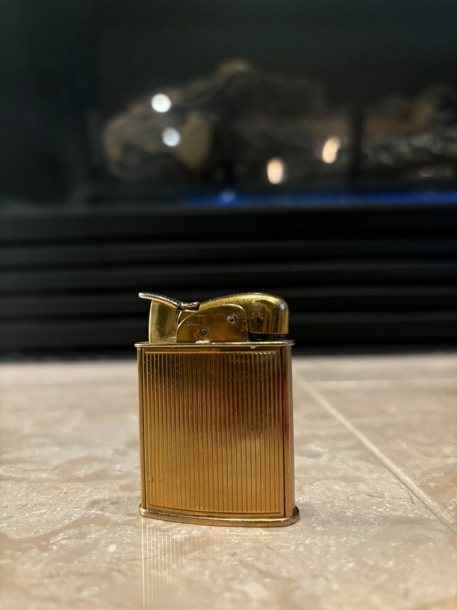 Relive the elegance of the 1950's with the c. 1950's Evans Spitfire lighter. With its high-class design and beautiful engravings, this lighter captures the essence of mid-century style. Its unbelievable condition makes it a must-have for any collector. Dare to own a piece of history!