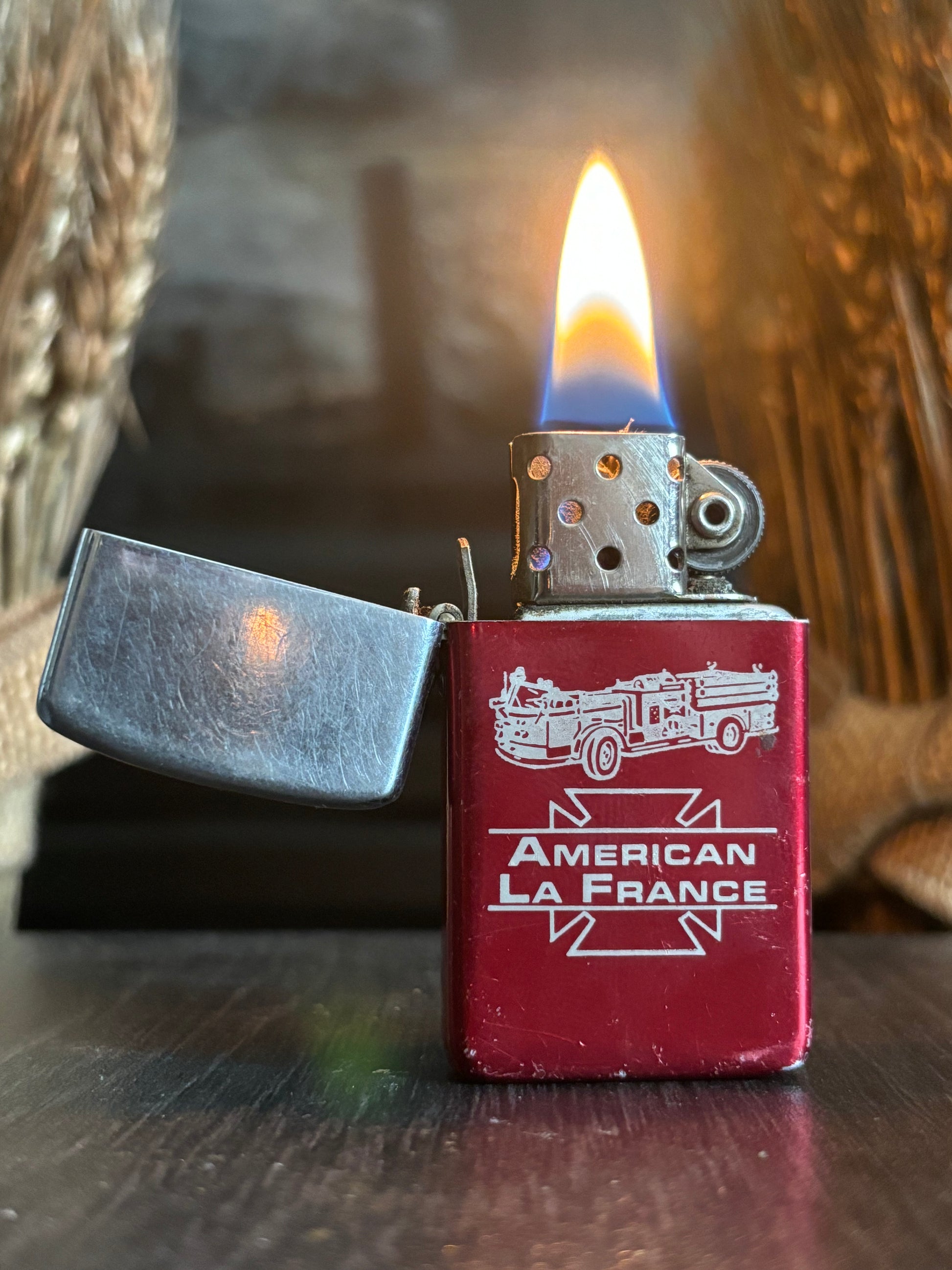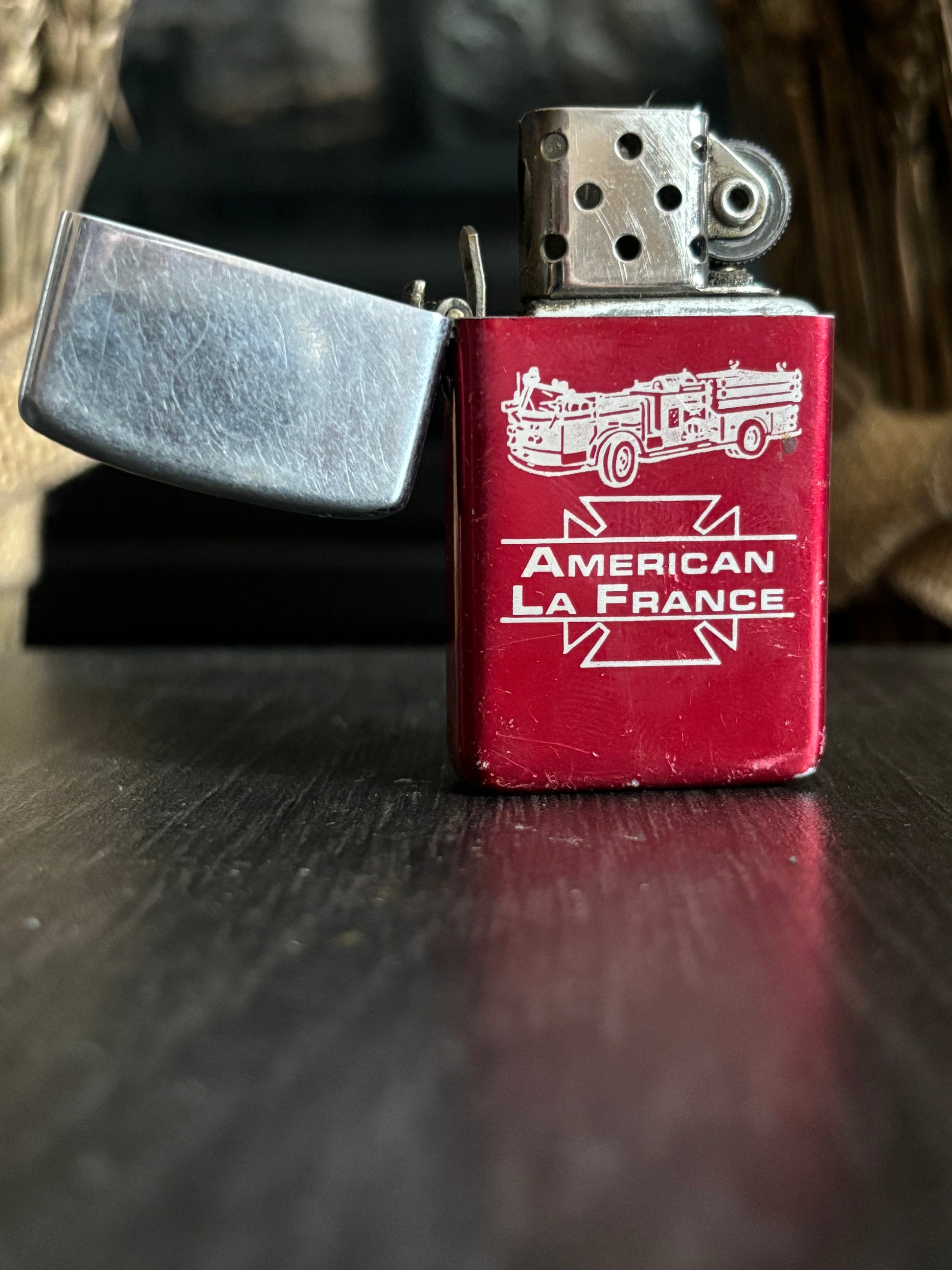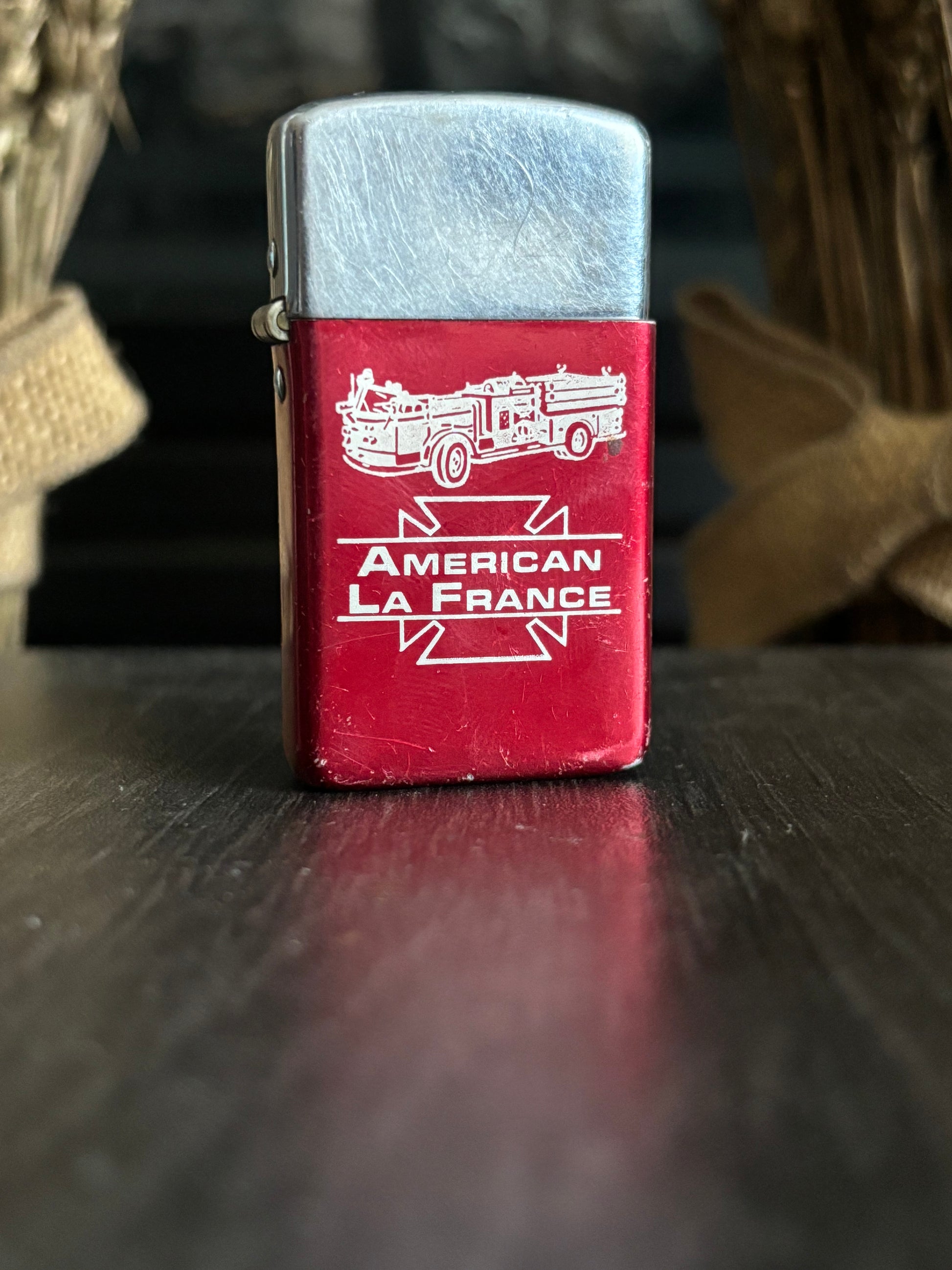 Experience the nostalgia and quality craftsmanship of the c. 1960's American LaFrance Fire Engine Flip Top Lighter, proudly made in the USA by the park lighter company. Adorned with the iconic logo of American LaFrance, renowned for their fire engines since 1873. Perfect for vintage lighter collectors and fire fighters alike.