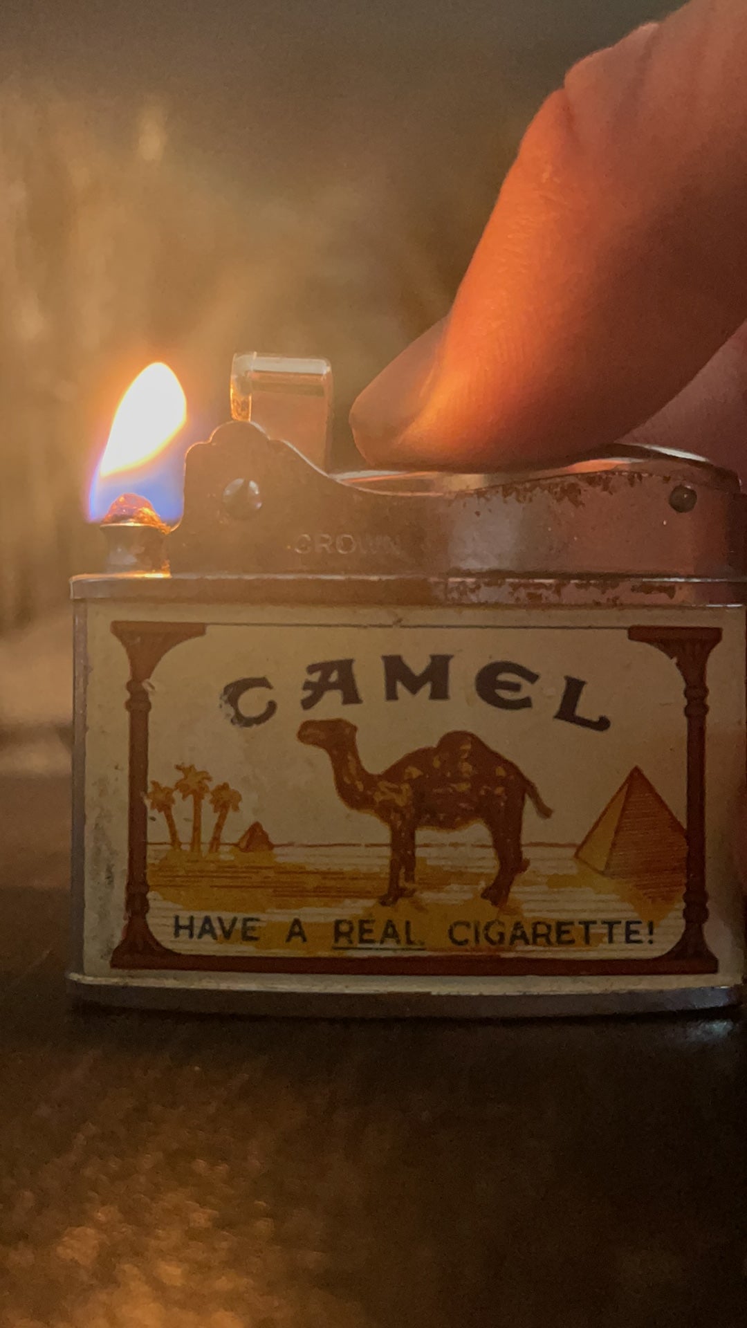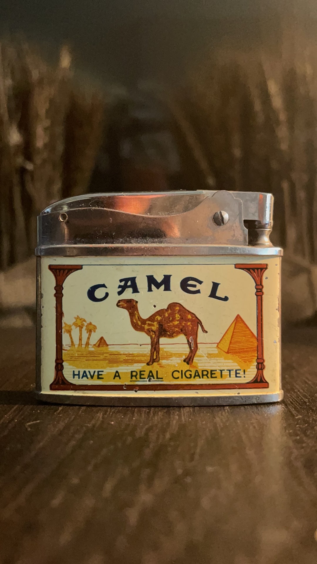 Vintage Camel Promotional Lighter, crafted by Crown in Japan. Featuring a stylish camel advertisement, this high-quality lighter is perfect for any collector or lover of vintage items.
