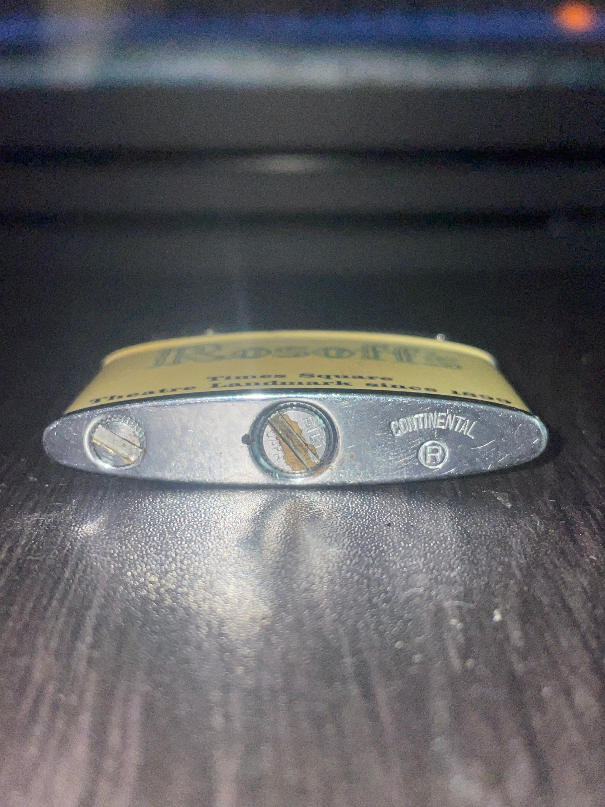 Discover the nostalgia and craftsmanship of the 1950s with our fan favorite Continental Lighter Feat. Advert! This timeless piece is not only a reliable lighter, but also a piece of history from the iconic Rosoffs Theater - a landmark since 1899. Add a touch of vintage style to your collection and spark conversations with this unique lighter.