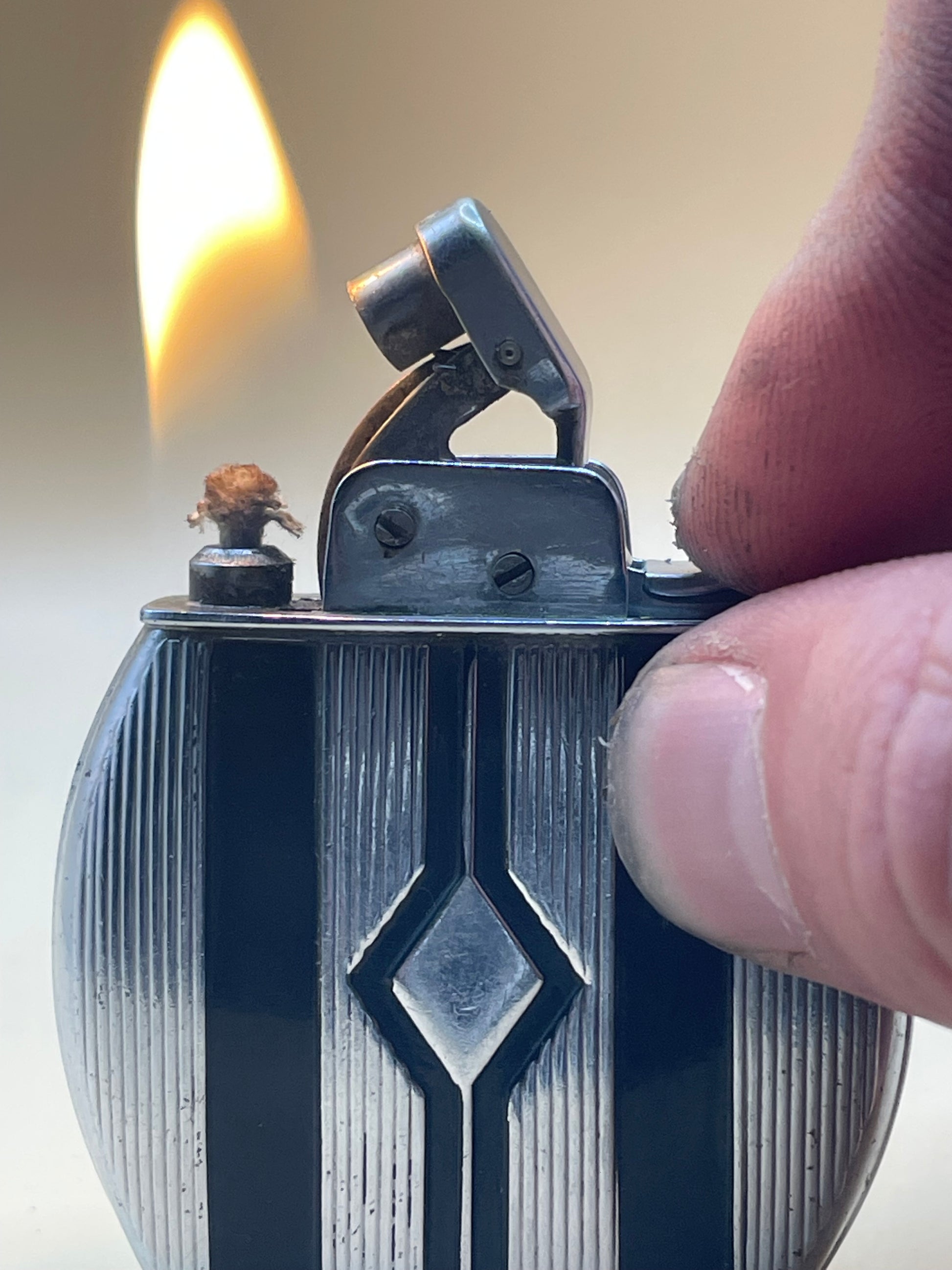 Evan's Trig-A-Lite is a vintage lighter, originally made in the 1930s and 1940s by Evans. Its unique click-activation mechanism, known as trig-a-lite, was ahead of its time and continues to be admired by collectors.