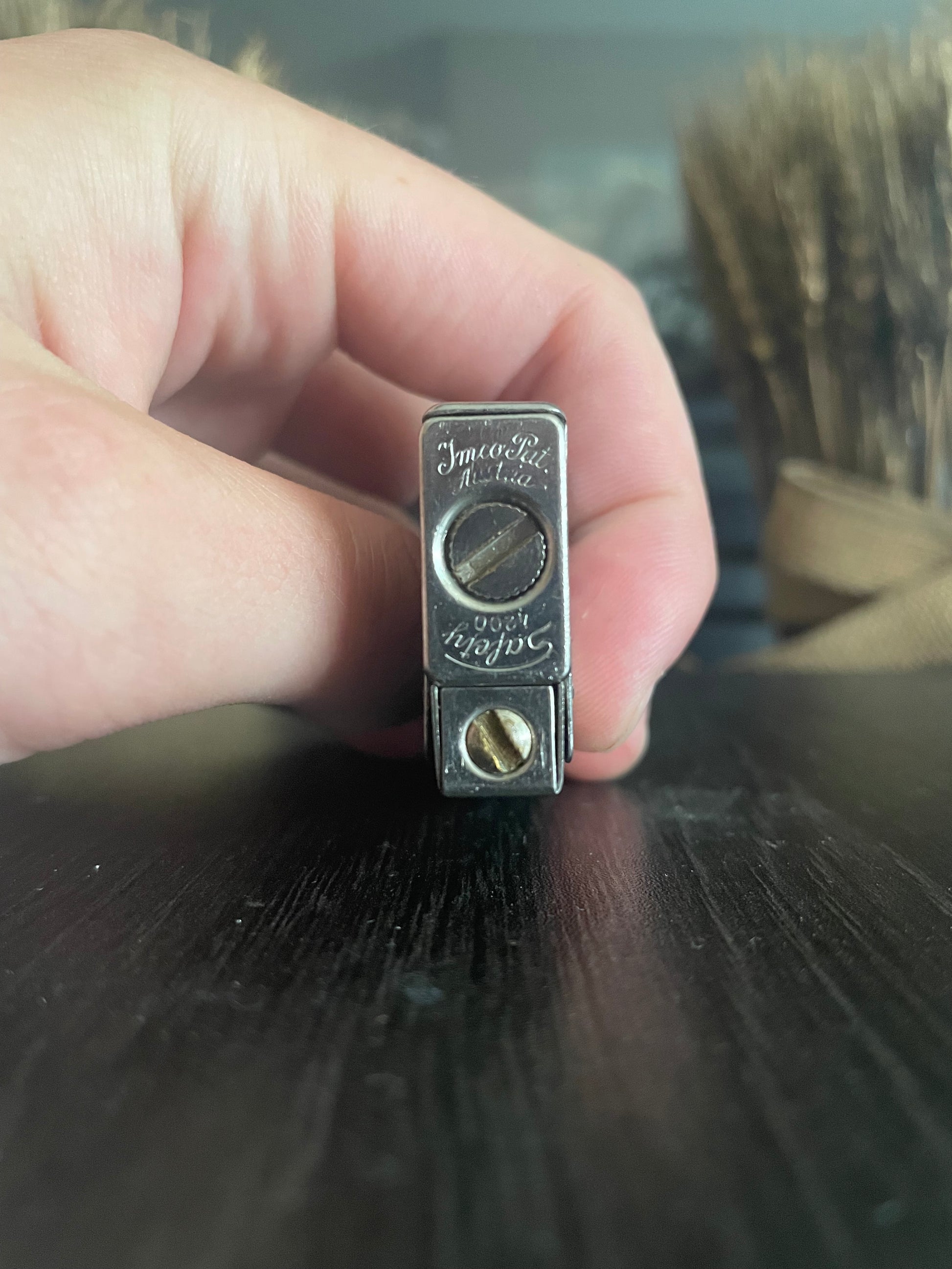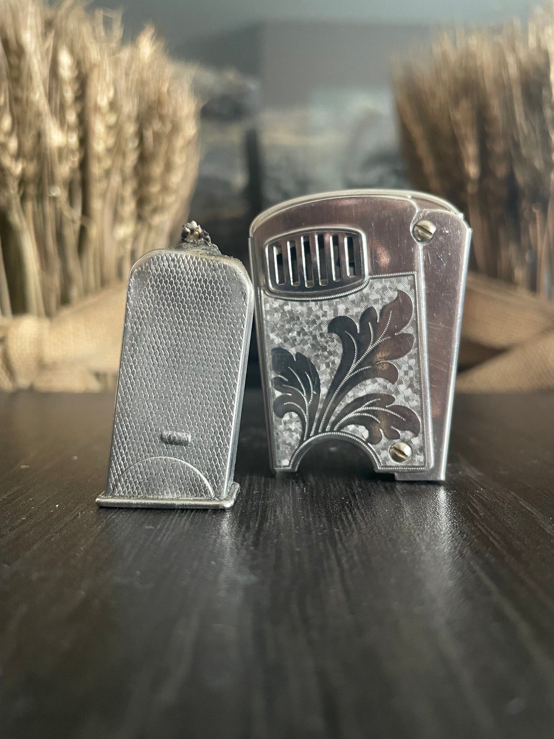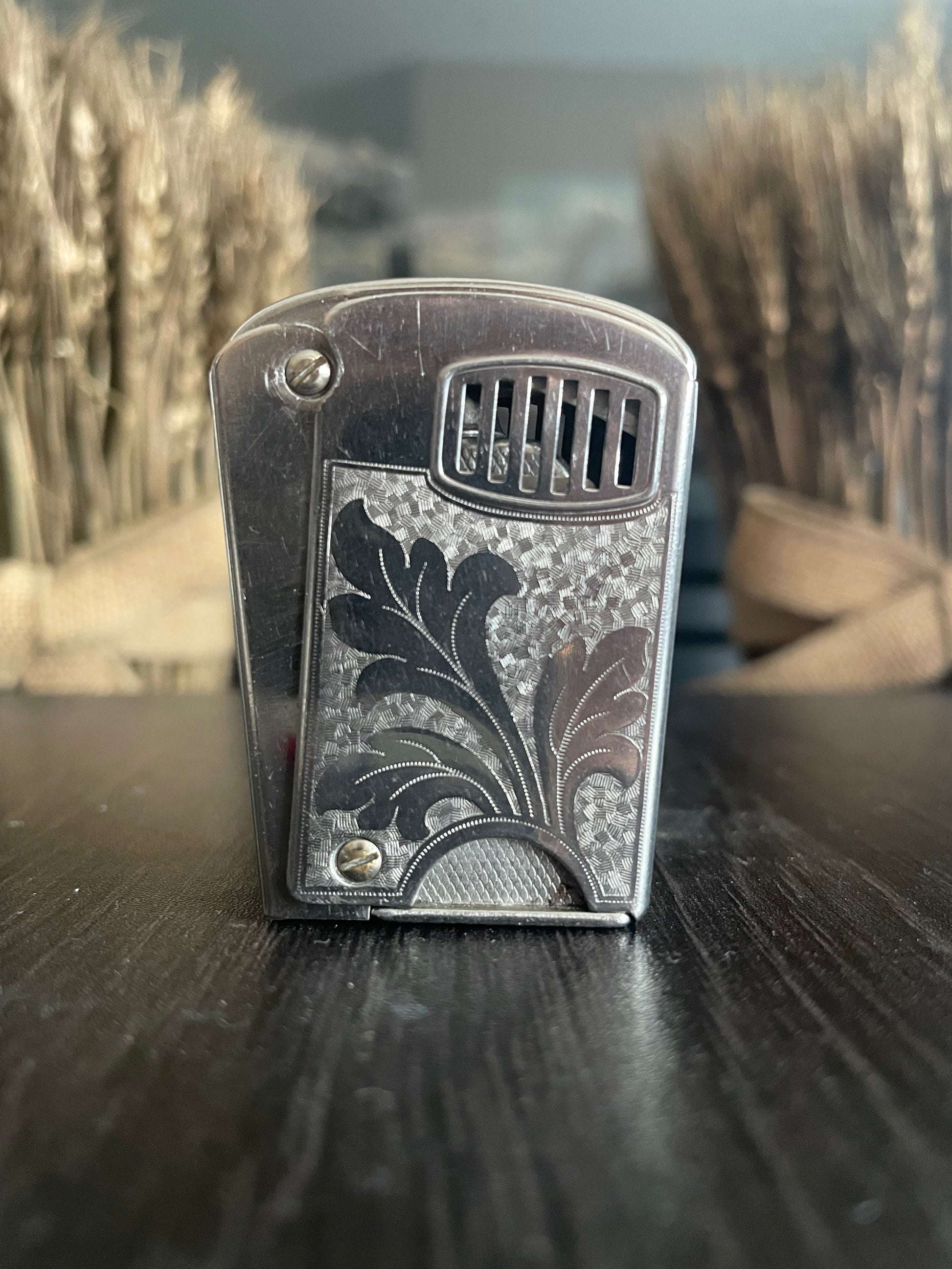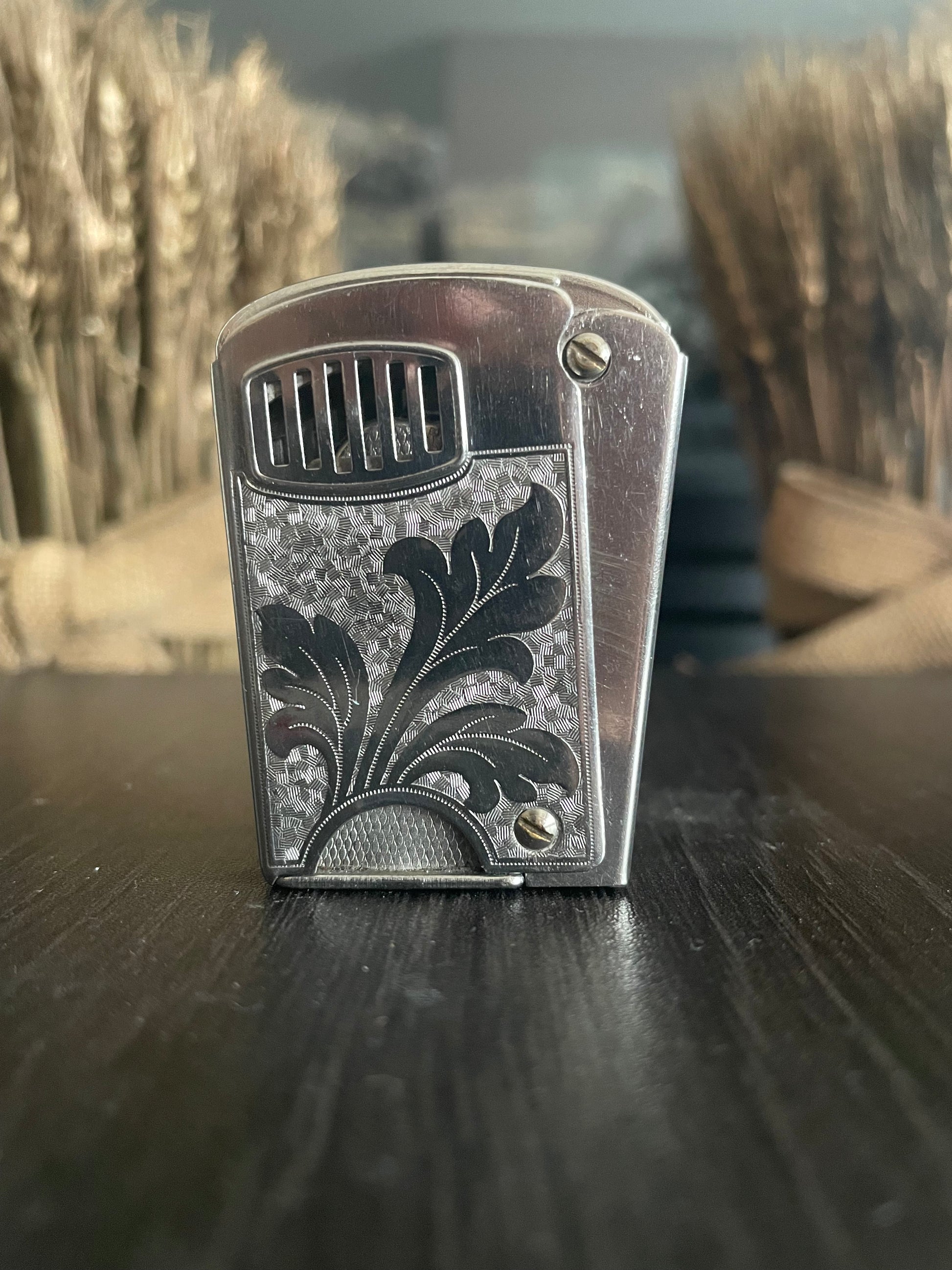 This IMCO Safety 4200 vintage lighter, made in Austria, offers a unique and authentic experience unlike modern day alternatives. Its striking method, activated by squeezing the side, and beautiful leaf design make it a standout addition for any collector who loves vintage lighters.