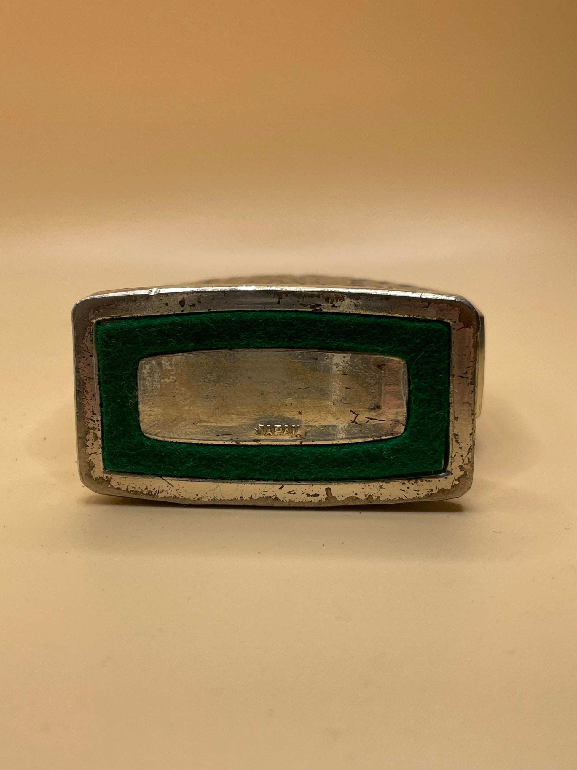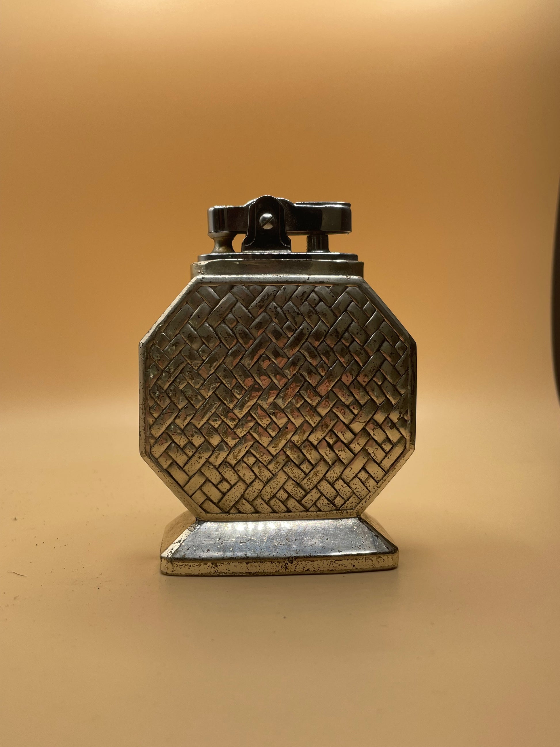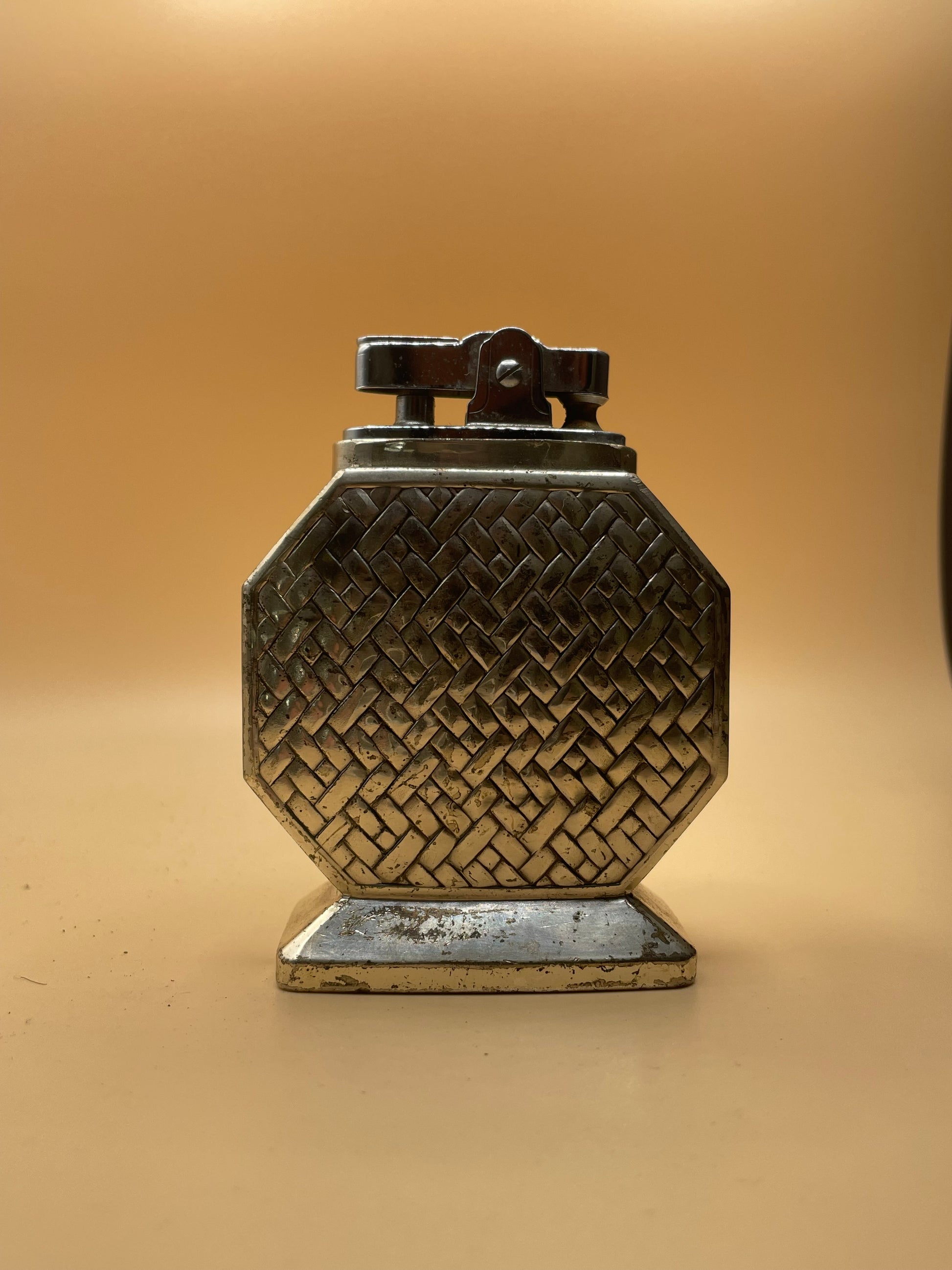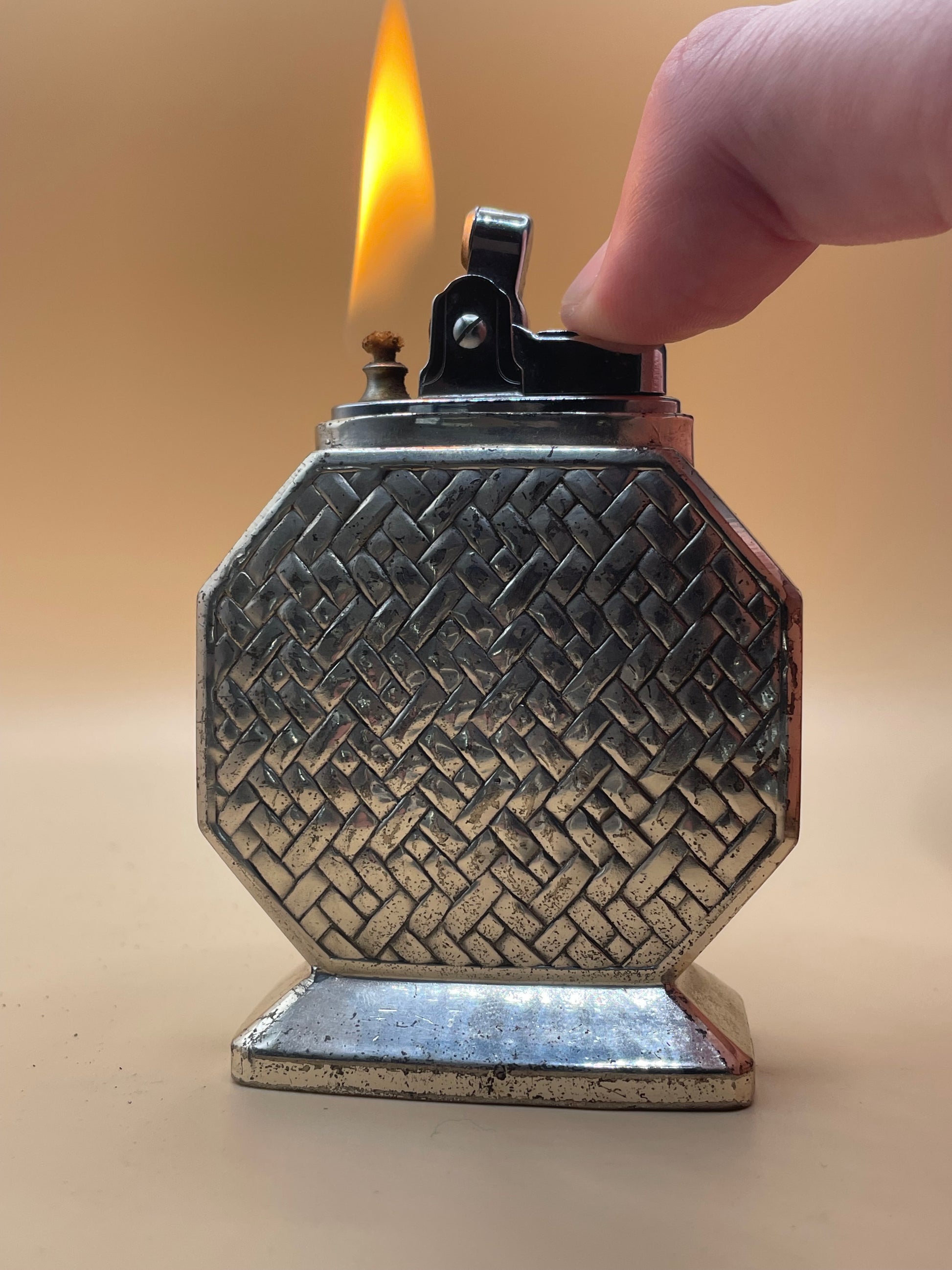 This vintage table lighter has a beautiful interwoven design and comes from Japan. It also has felt on the bottom to protect your tabletop. Light up in style with this elegant piece.