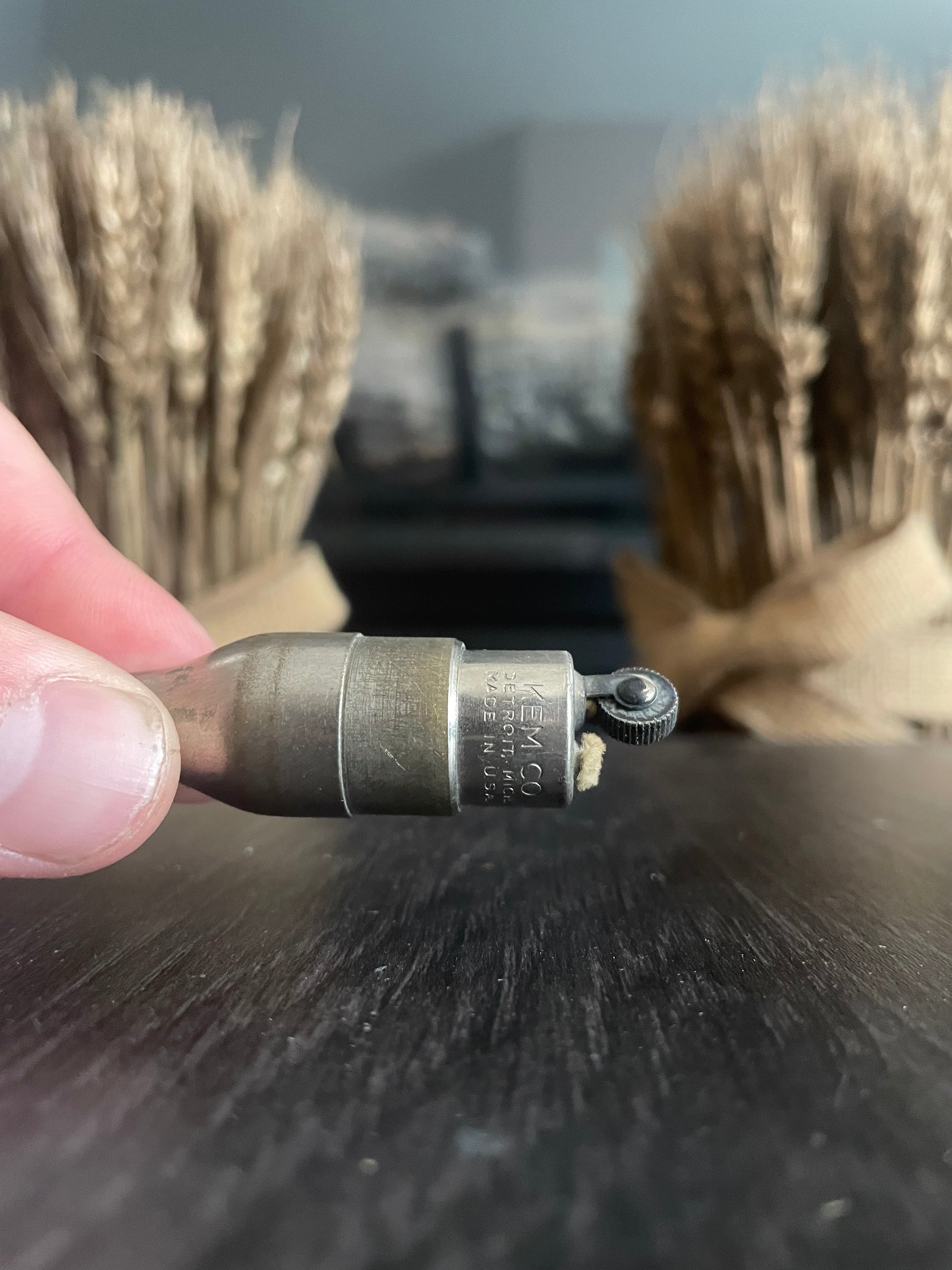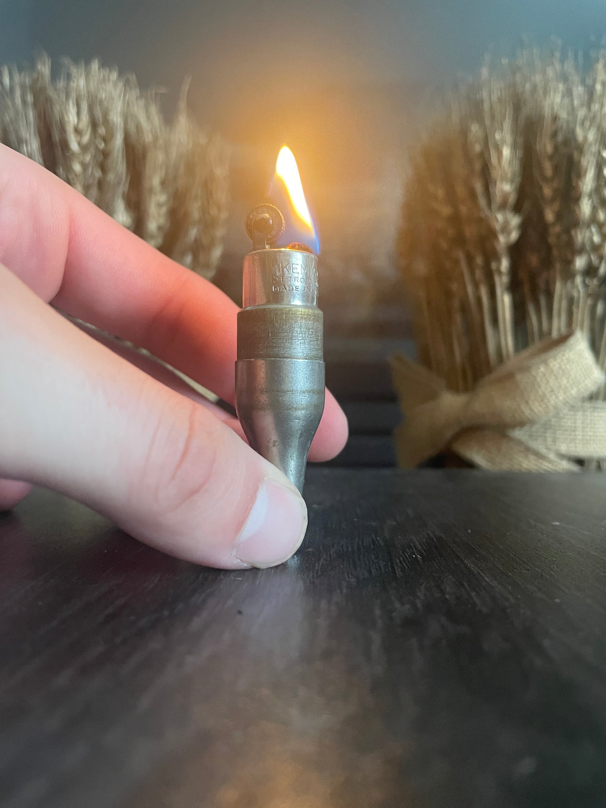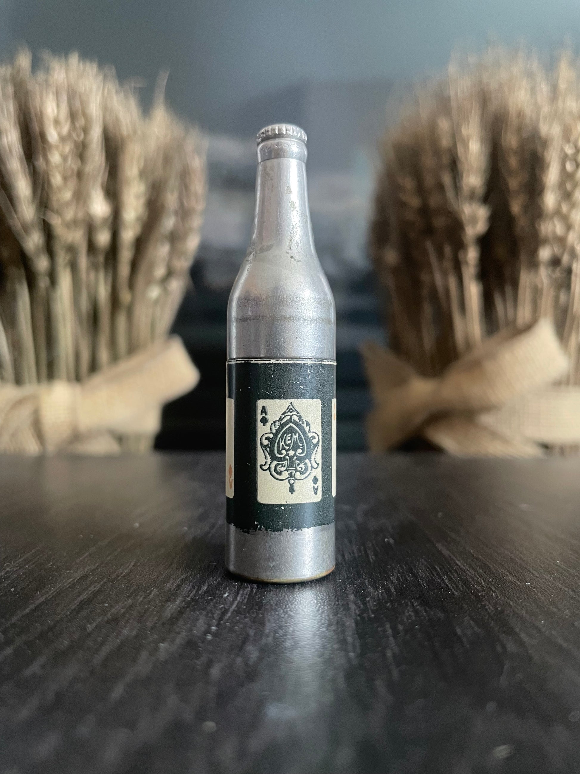 Introducing the KEM Bottle Lighter - crafted by the renowned KEM lighter company in Detroit. This beautiful working vintage lighter embodies a timeless charm that any vintage lover would adore. Get yours now and add a touch of nostalgia to your collection.