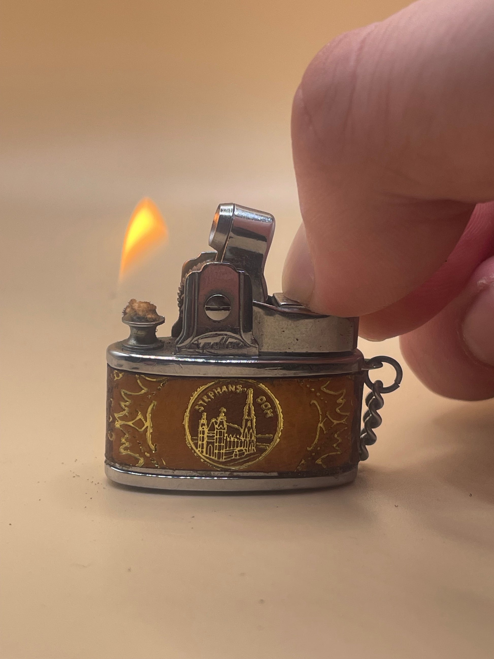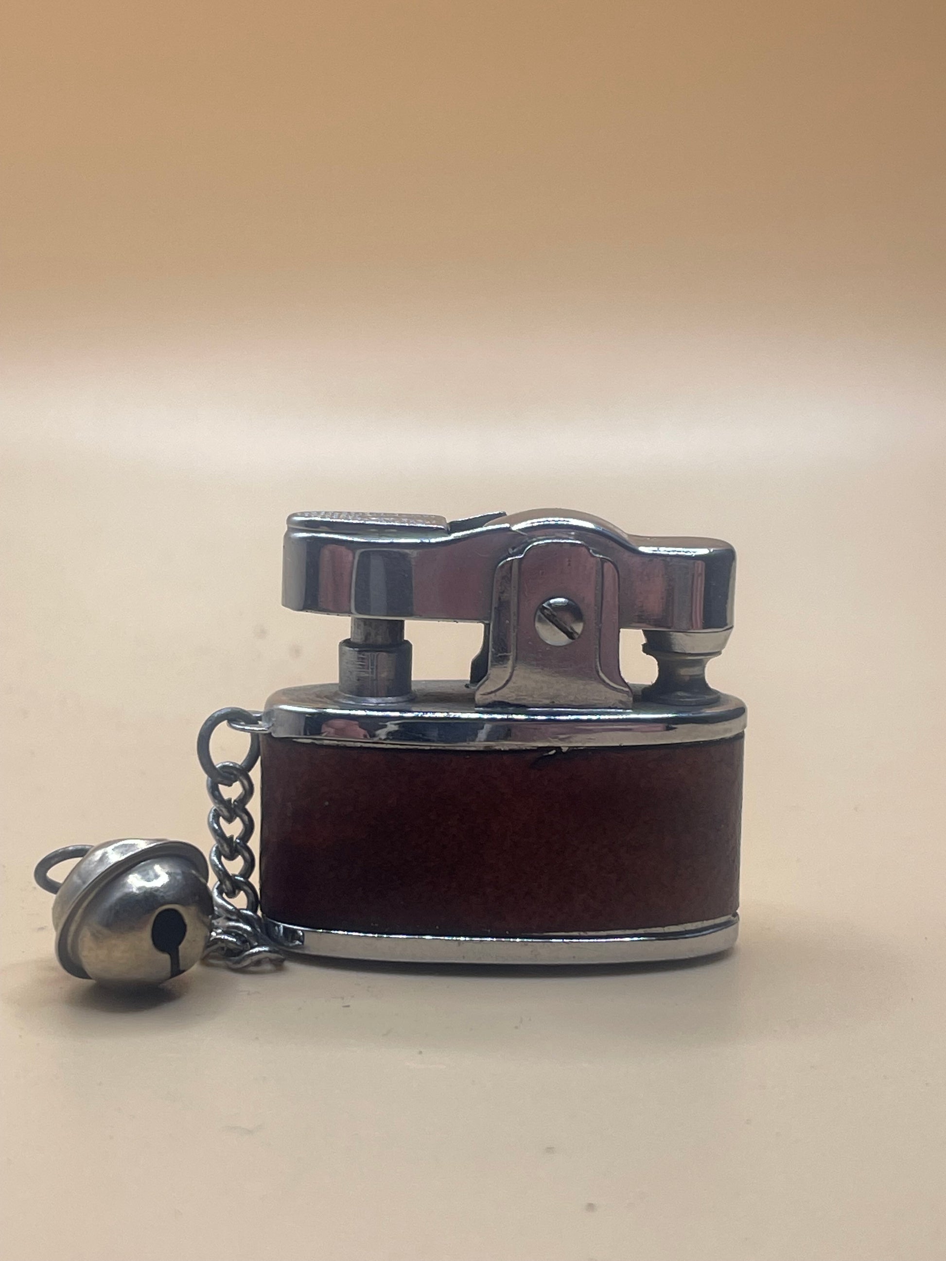 A functional mini pocket lighter with an attached bell, perfect for keeping track of your lighter on the go. Its compact size makes it convenient to carry and the added bell feature adds a touch of personalization. Expertly crafted for easy use.
