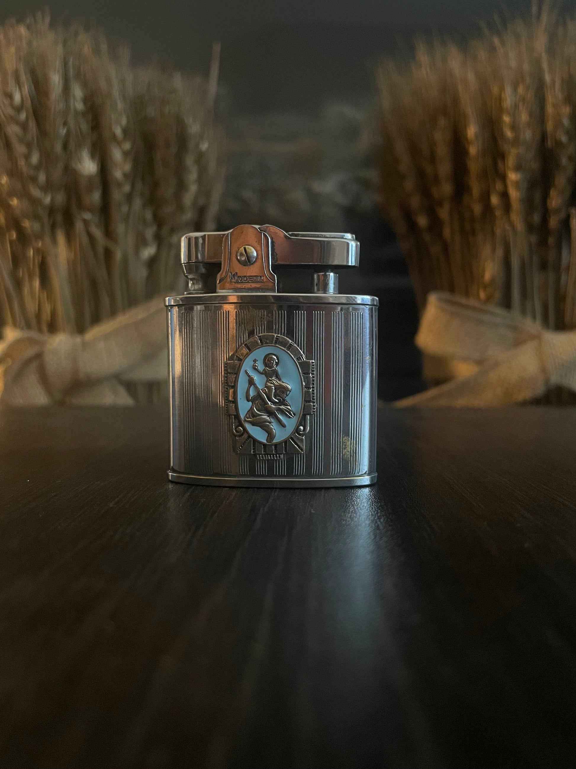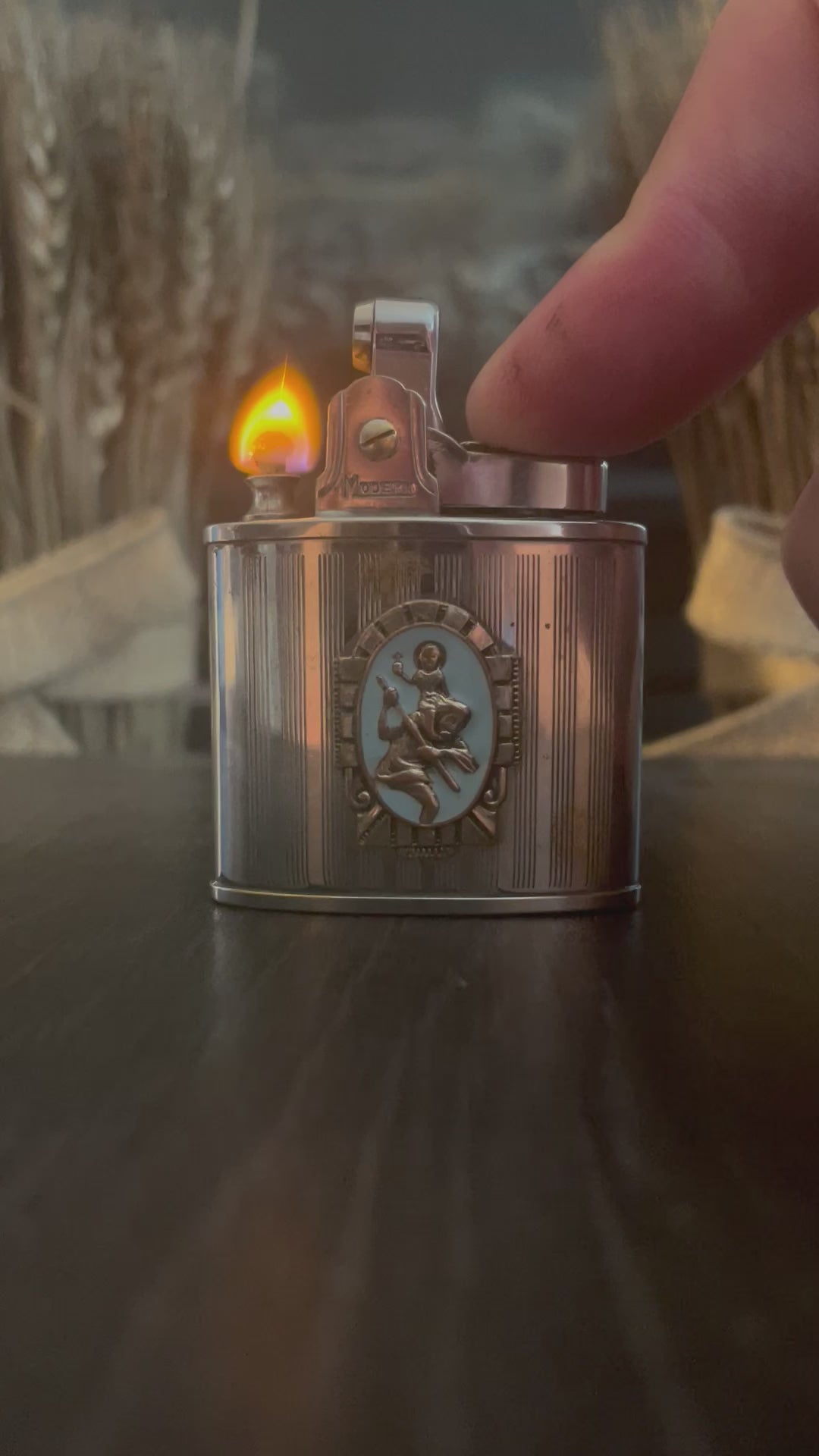 Experience the nostalgia of the 1960's with our Modern H.M.C Modernlite. This vintage Superlighter features a charming depiction of St. Christopher carrying baby Jesus, adding a touch of history to your everyday life. Get your hands on this unique piece today!