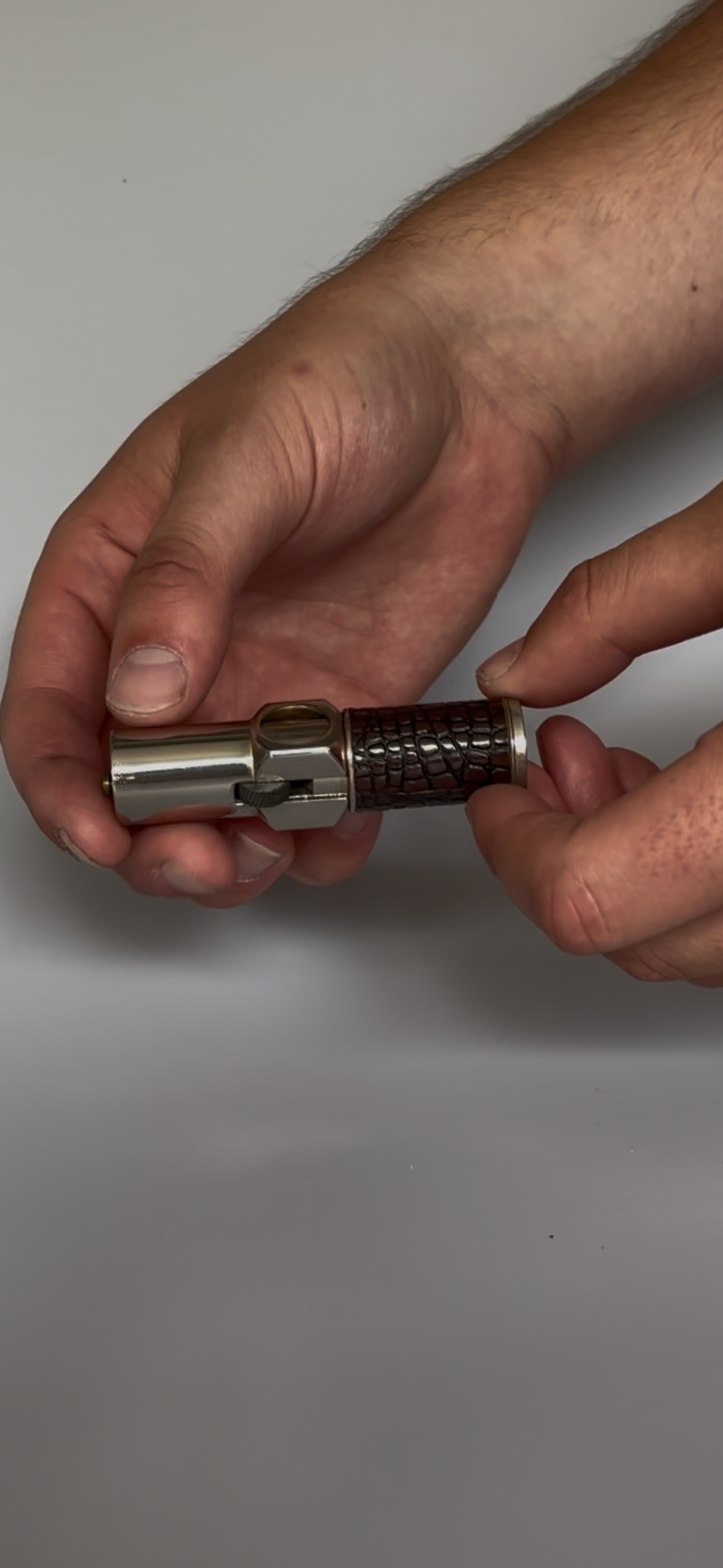 The Nimrod PipeLighter is a highly sought after collectible for those who appreciate vintage lighters. With a rare and unique faux alligator skin handle, this piece is in great shape and perfect for any collector.