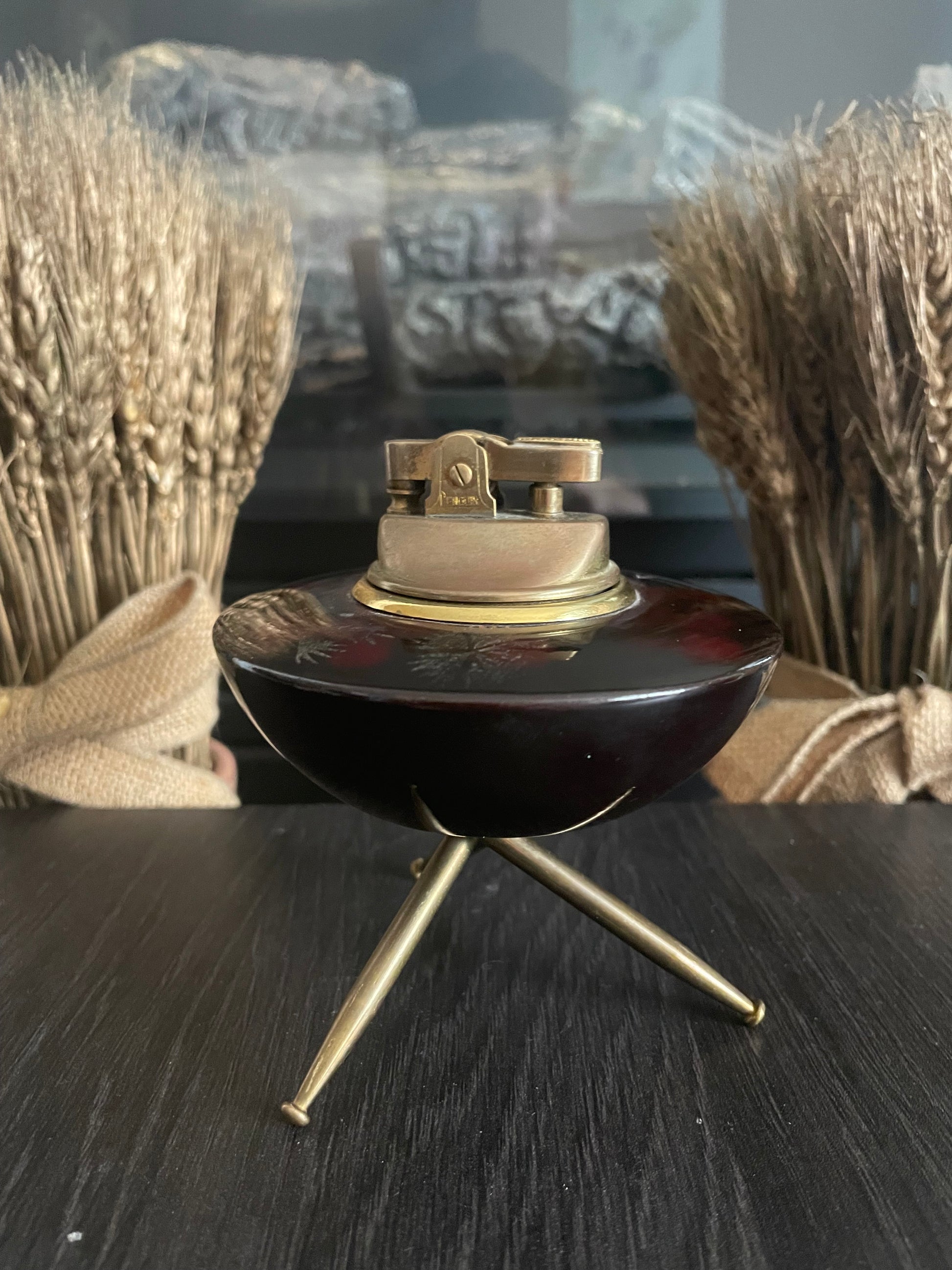 Travel back in time with the vintage Penguin UFO table lighter! Made in the 1950s in Japan, this lighter features a stunning red and black design with white detailing. Perfect for collectors or anyone with a love for retro style.