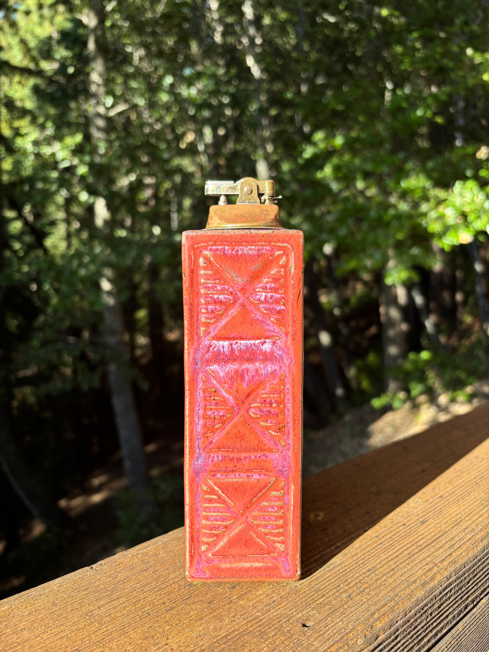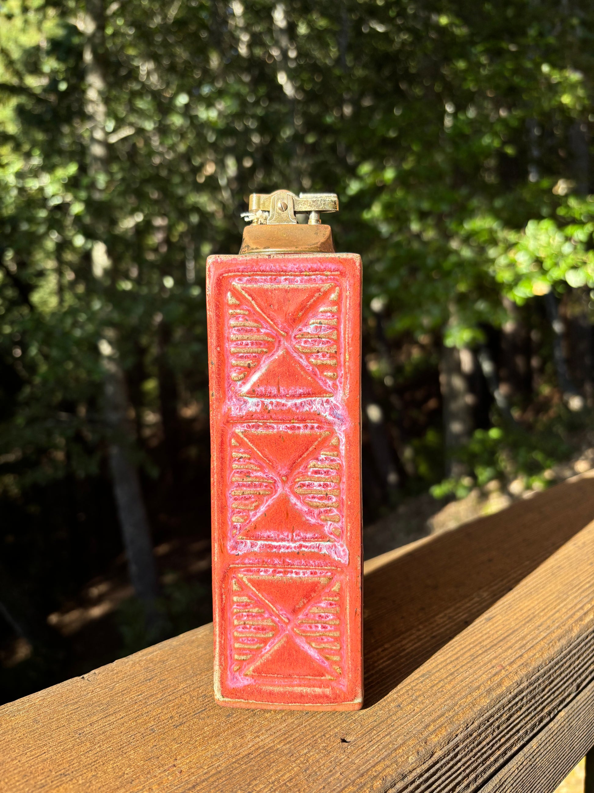 Red Ceramic Art Deco Tabletop Lighter