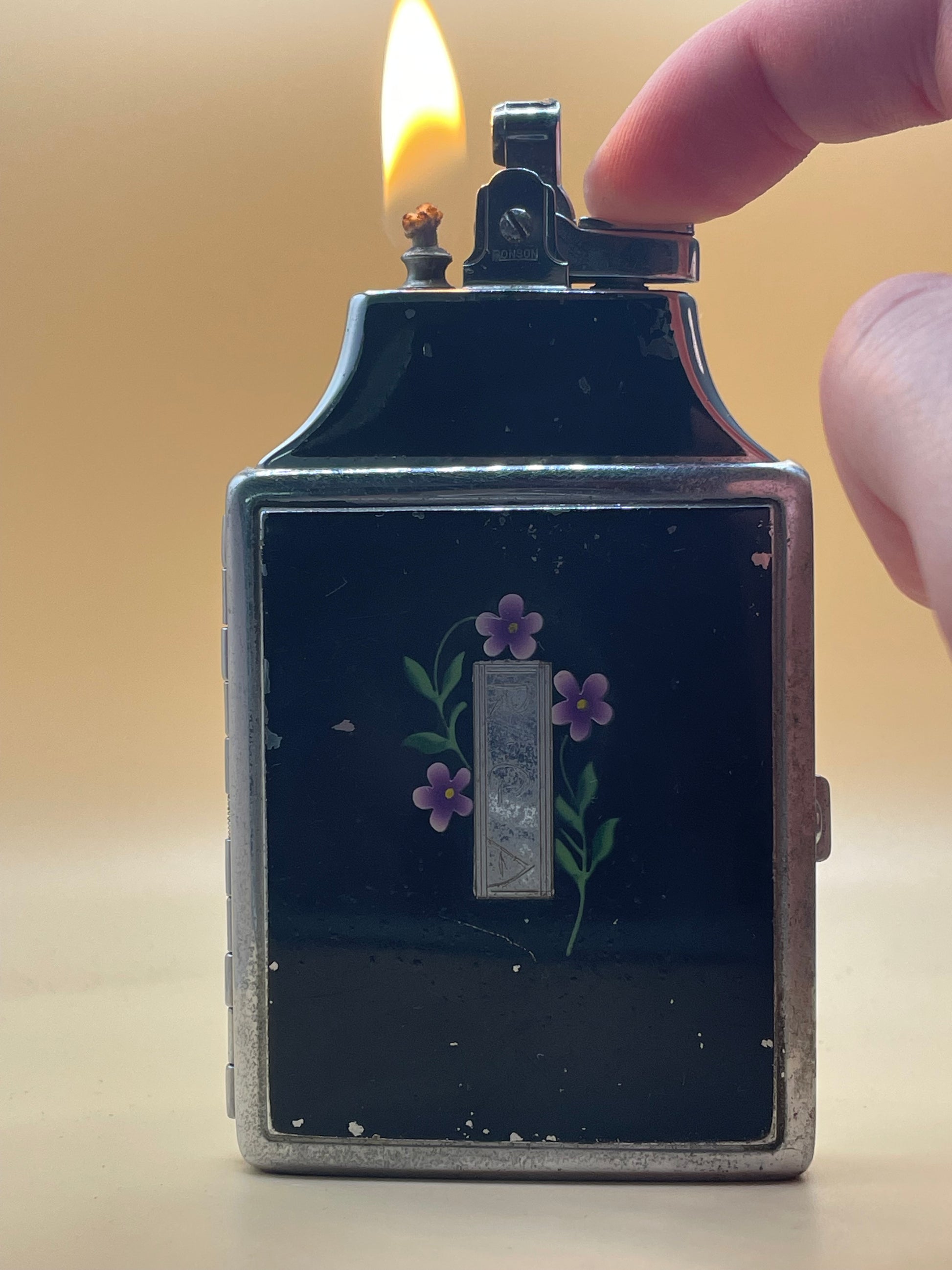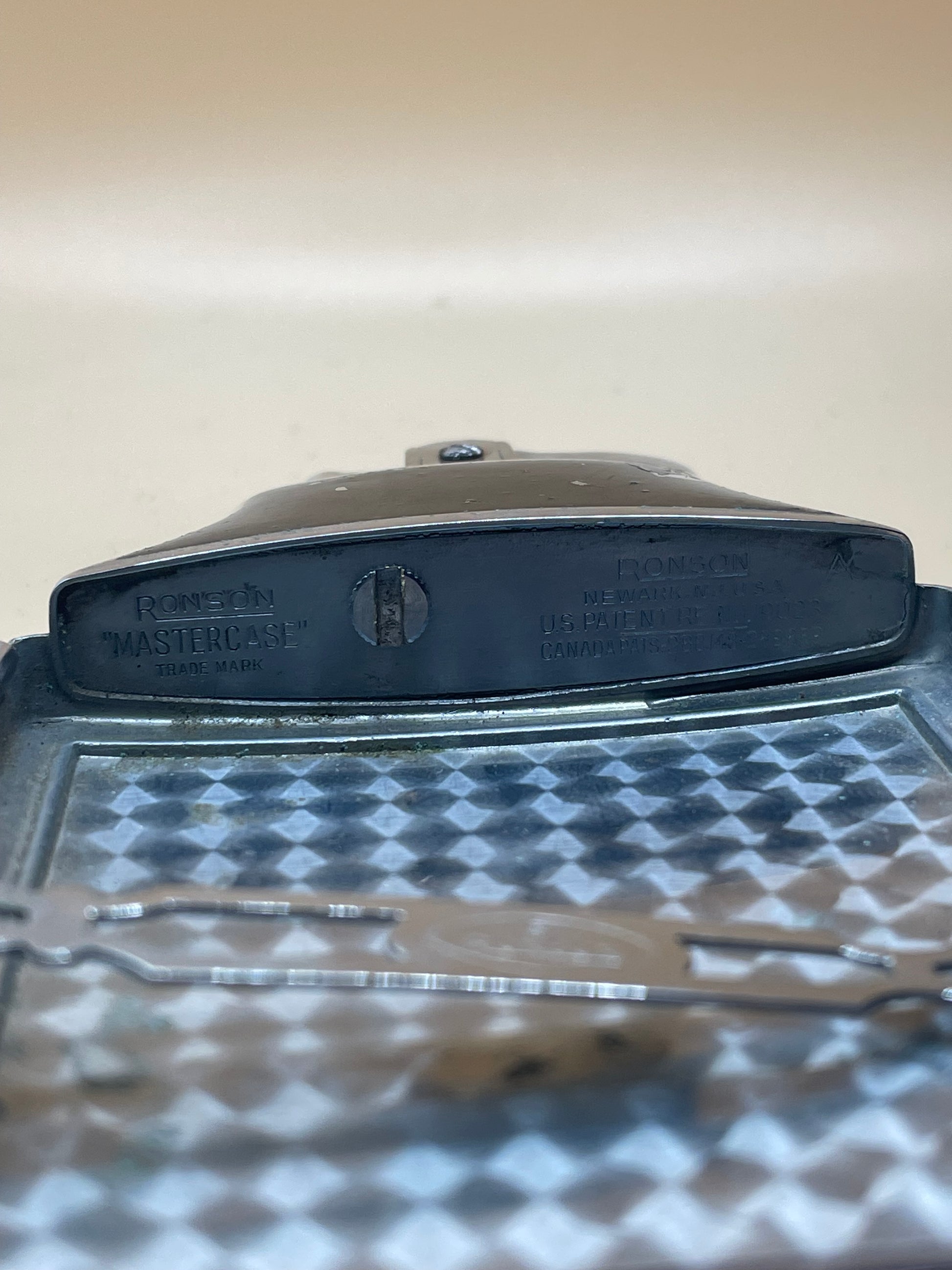 The Ronson Mastercase is a versatile accessory that can serve as a wallet, card holder, and more. Its slight blemishes and scratched initials add a touch of charm and personalization. Made with quality materials and precise craftsmanship, this Mastercase is both functional and stylish.
