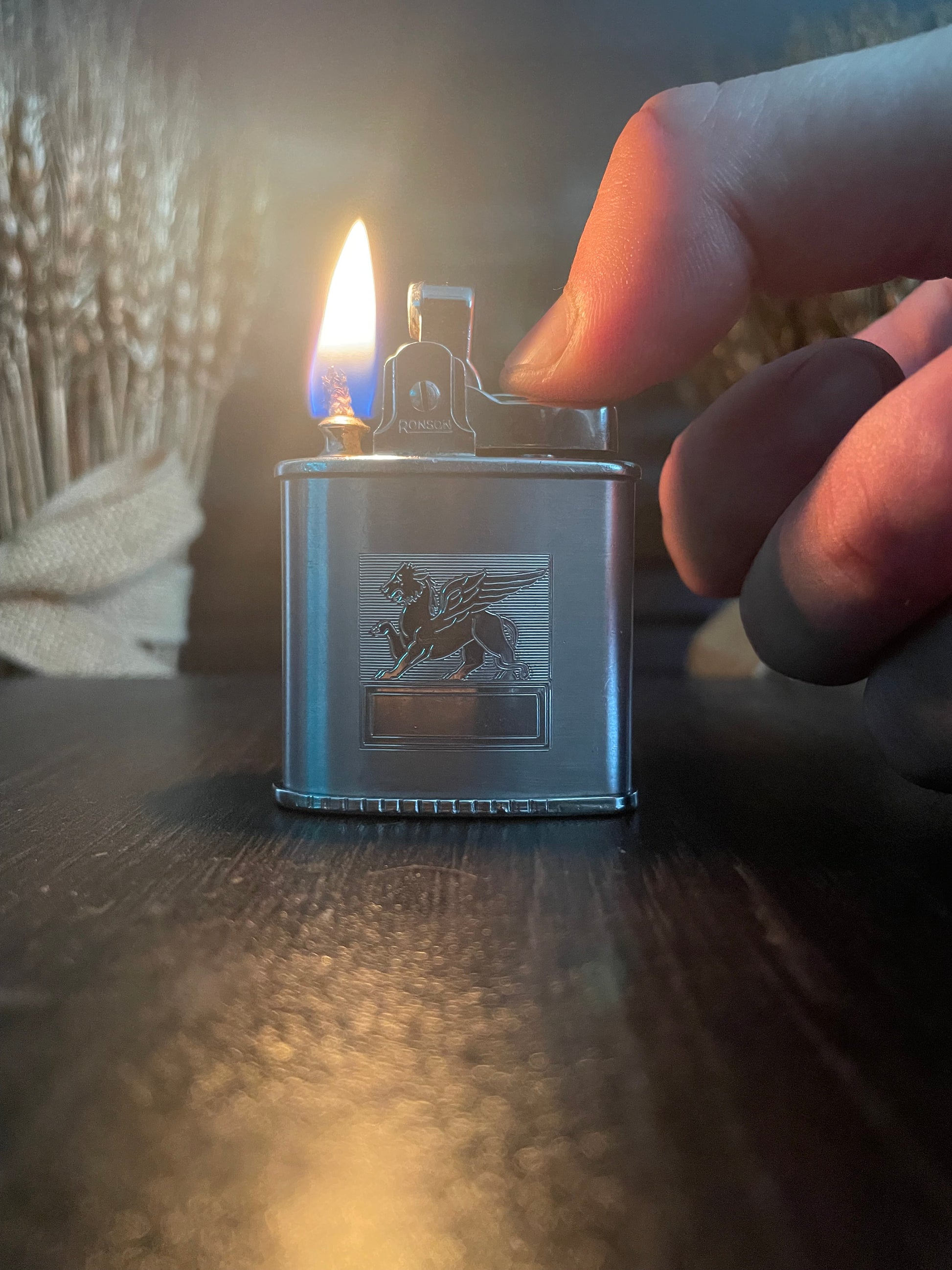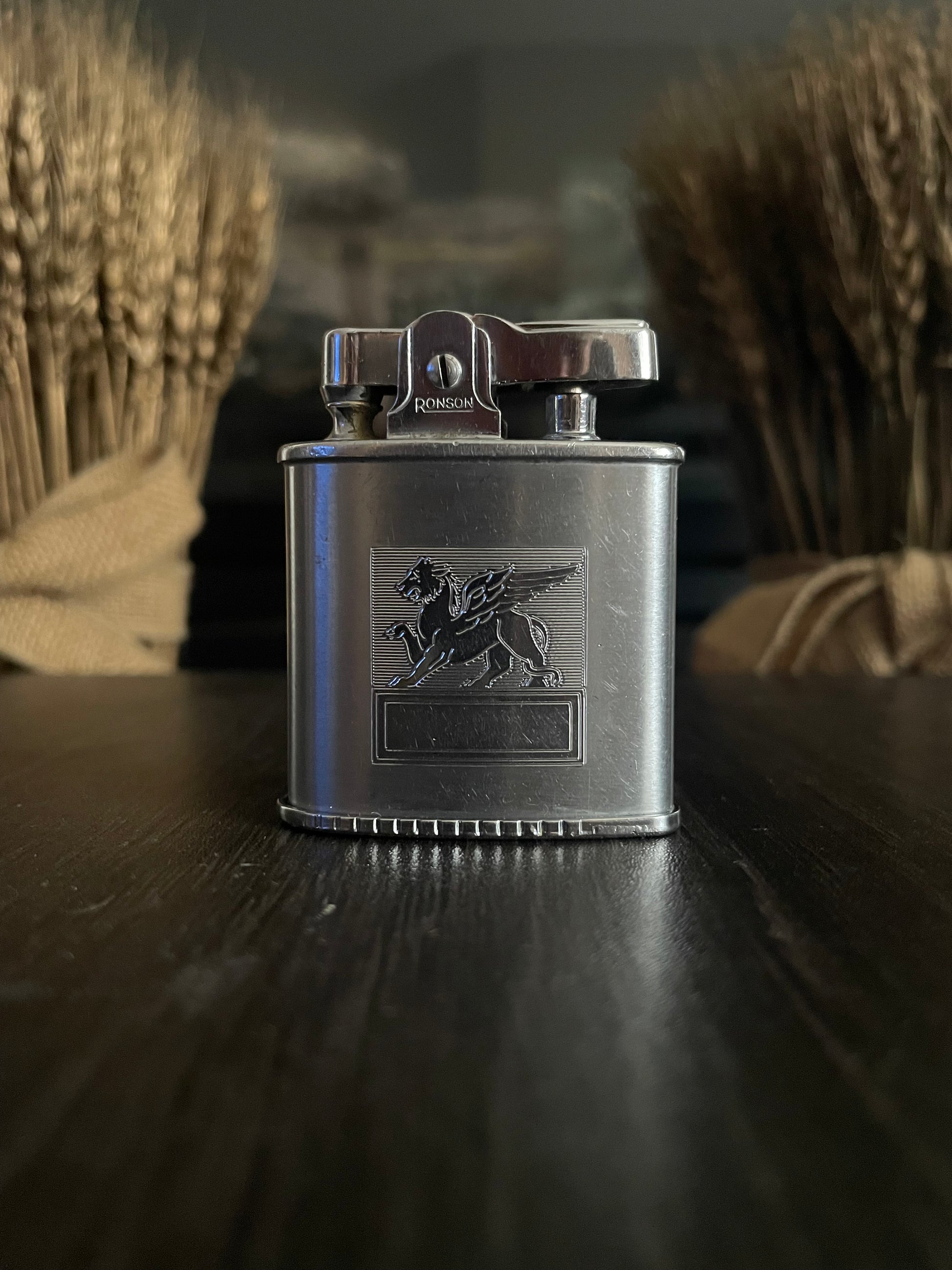 The Ronson Triumph - a vintage lighter with a rich history. Made in the 1950s, it has been lovingly restored to its original working condition. Ronson was a leading manufacturer of handheld lighters, known for their quality and craftsmanship. The beautiful Griffin engraving in art deco style adds a touch of elegance to this timeless piece.