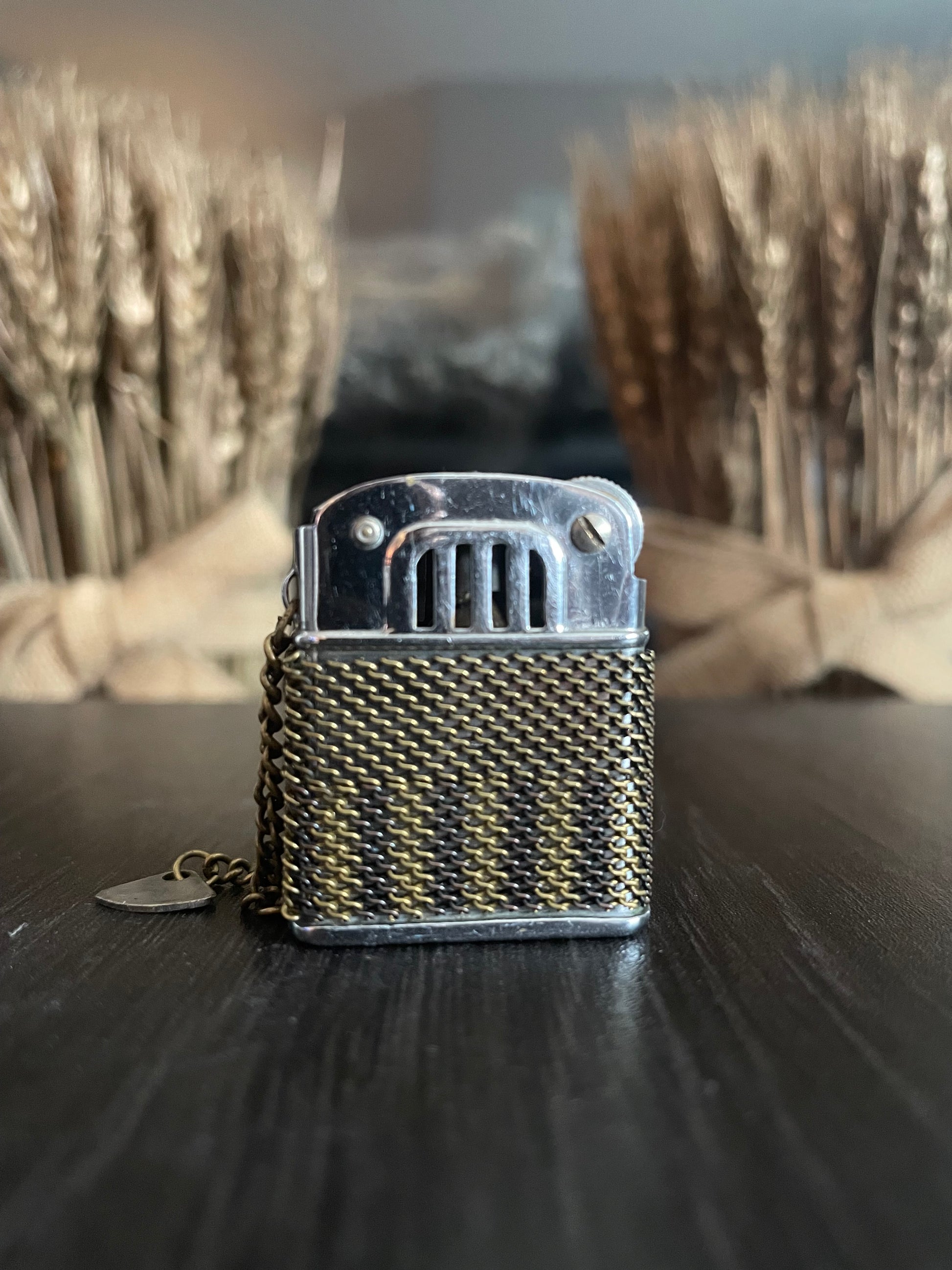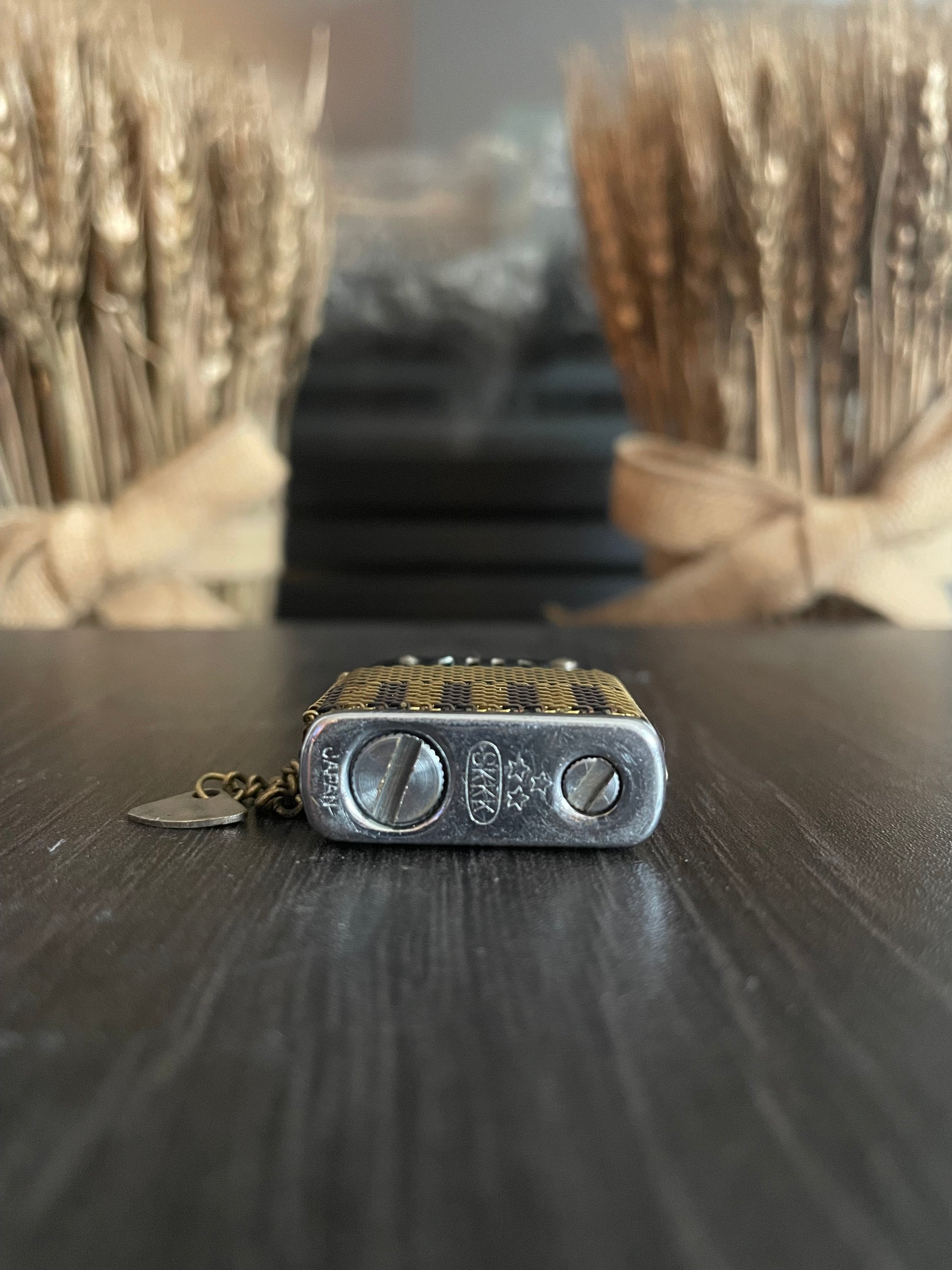Introducing a semi-automatic vintage lighter with a classic design, made in Japan and branded "SKKK". This lighter also features a built-in wind guard to prevent any interruptions while lighting up. Perfect for vintage enthusiasts who appreciate quality and style.