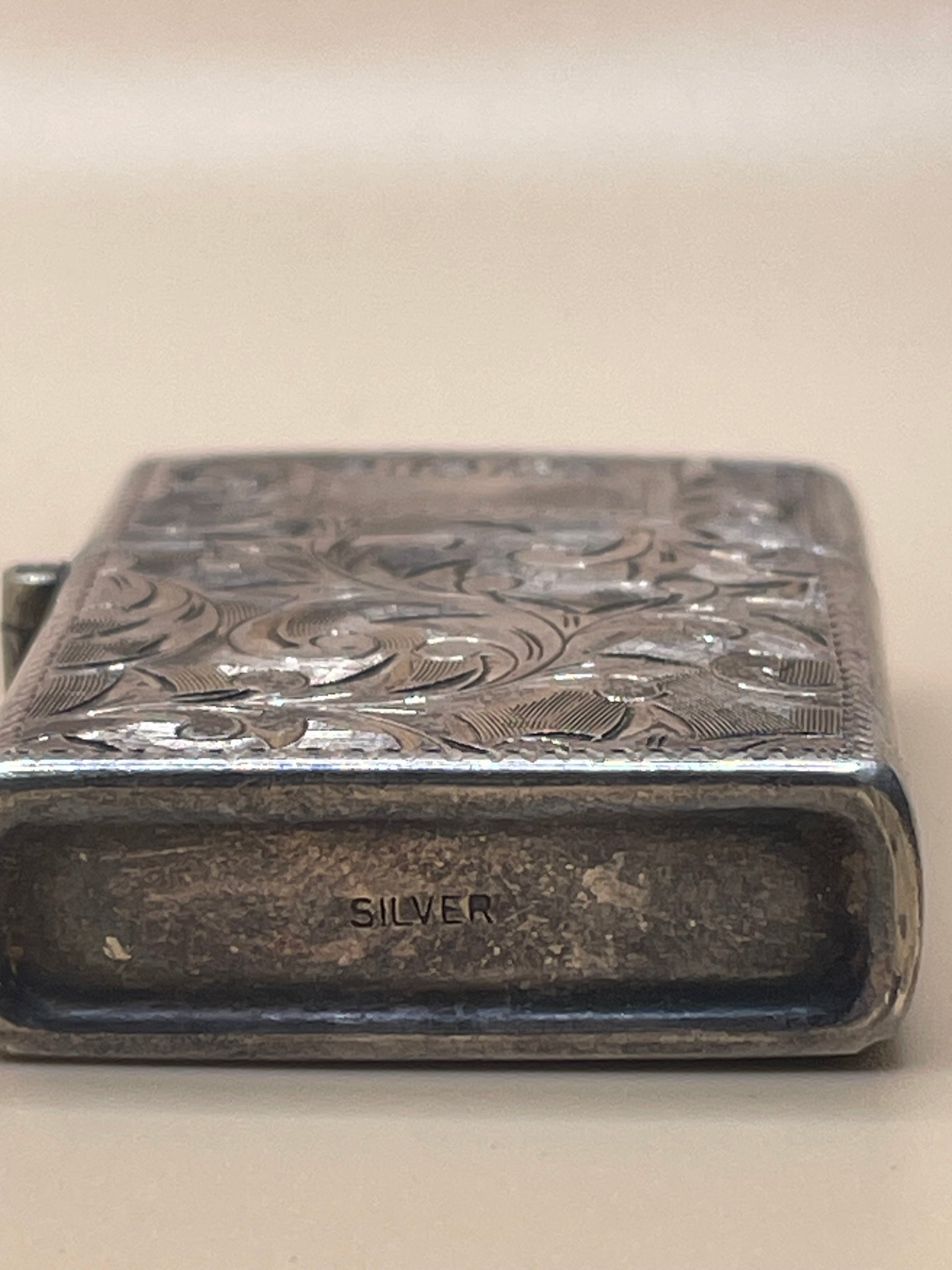 The Silver Lighter is a vintage lover's dream with its elegant design and phenomenal condition. Stamped with silver on the bottom, this lighter adds a touch of sophistication to any collection. Get your hands on this classic piece today.