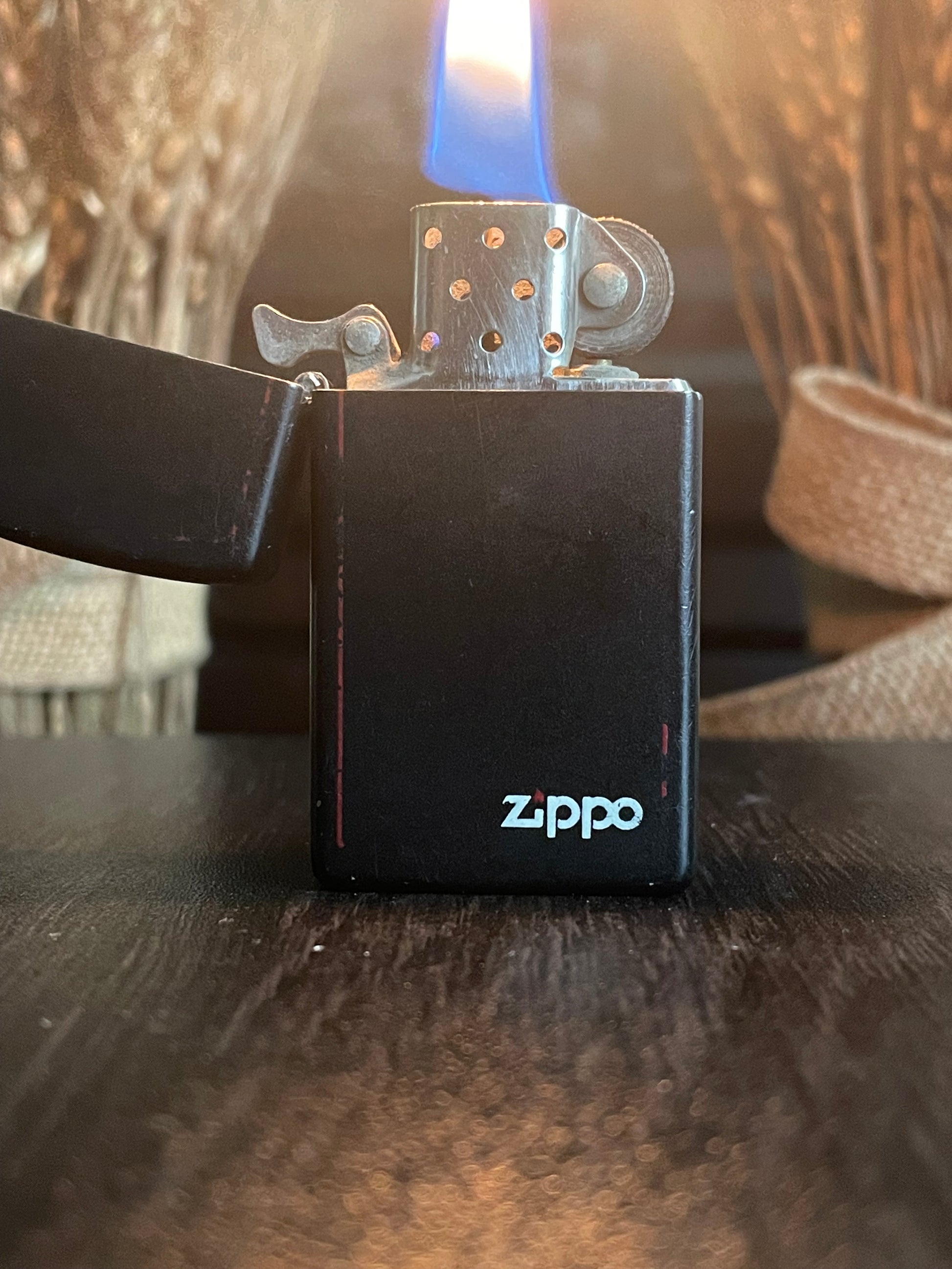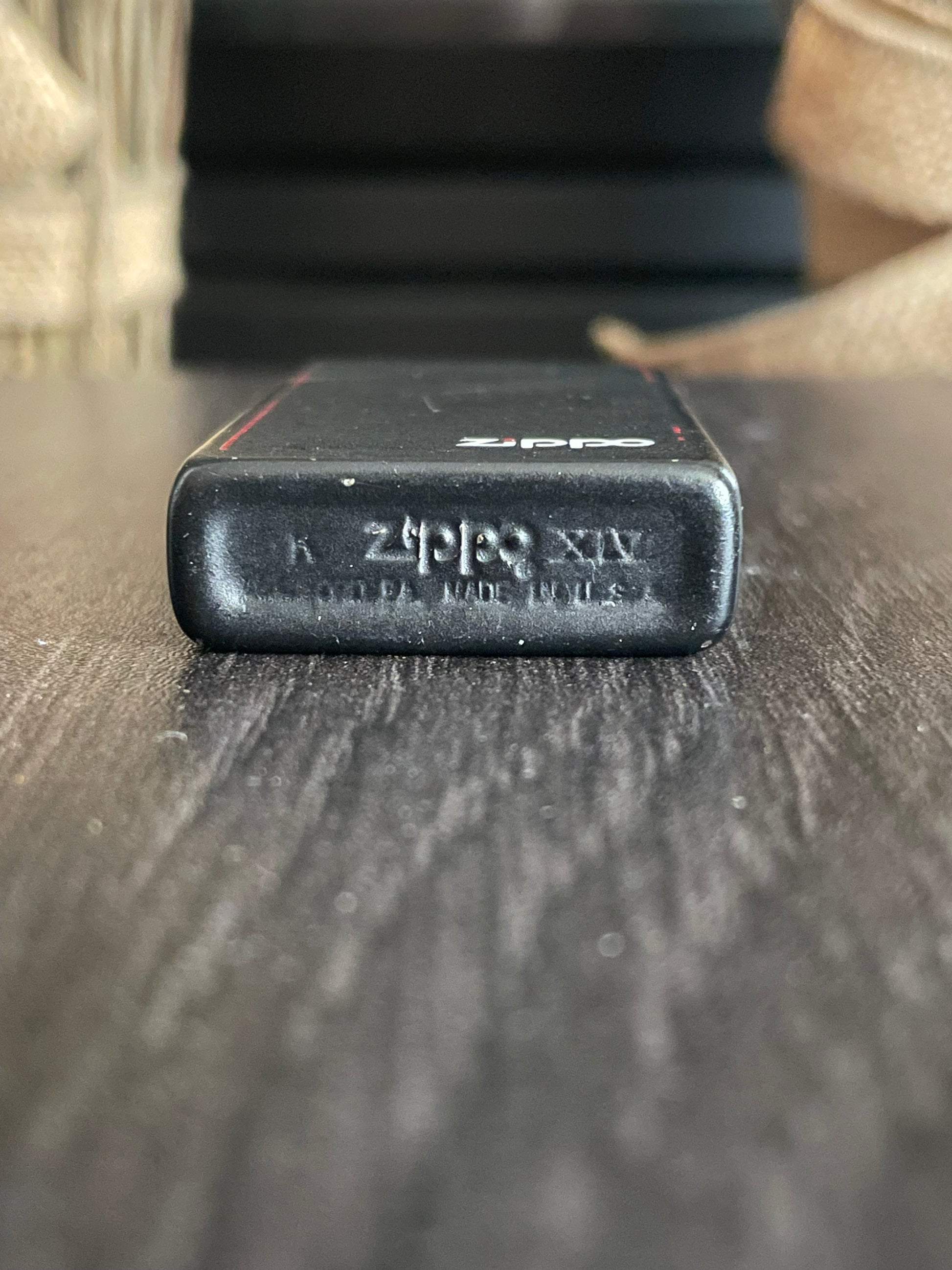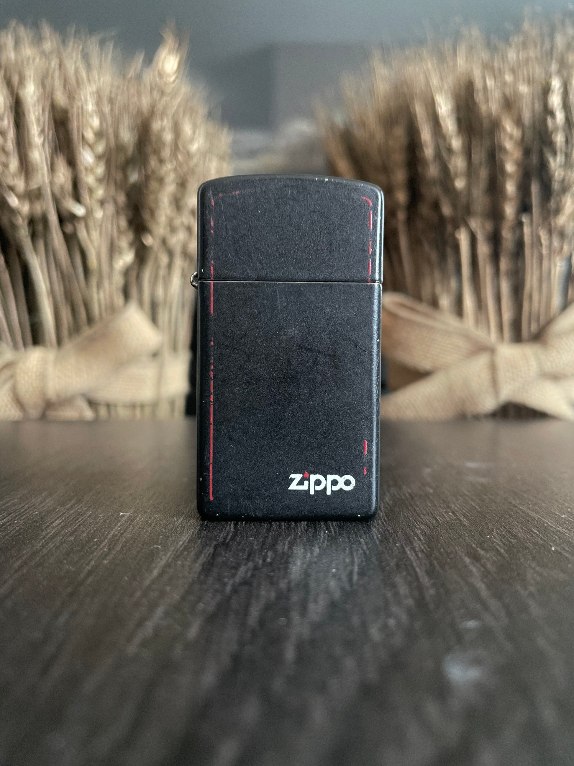 Sleek and stylish, this slim black Zippo with red highlights is perfect for the vintage lighter enthusiast. Its elegant design adds a touch of sophistication to any collection. Plus, it works great for all your lighting needs.