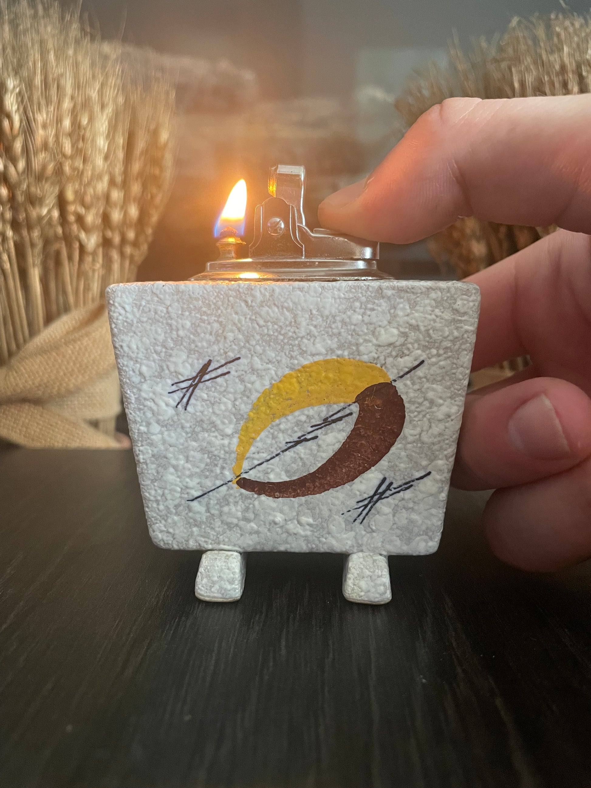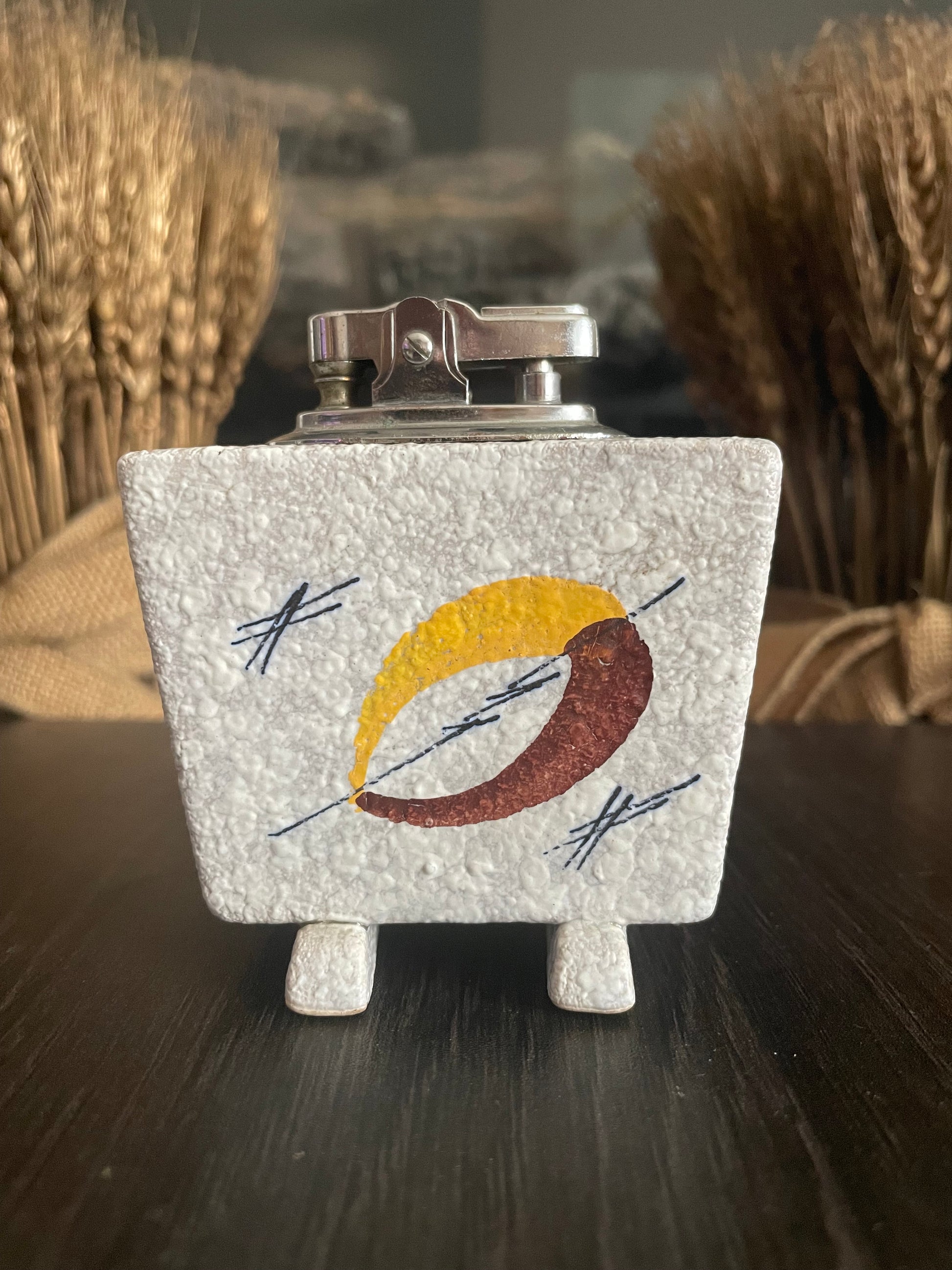 Introducing our stunning vintage Table Lighter, crafted from high-quality ceramics and adorned with a charming 50s-inspired painting. This unbranded piece boasts a patented lighter insert (No. 531887), making it both unique and functional. Add a touch of nostalgia to your home with this one-of-a-kind treasure.