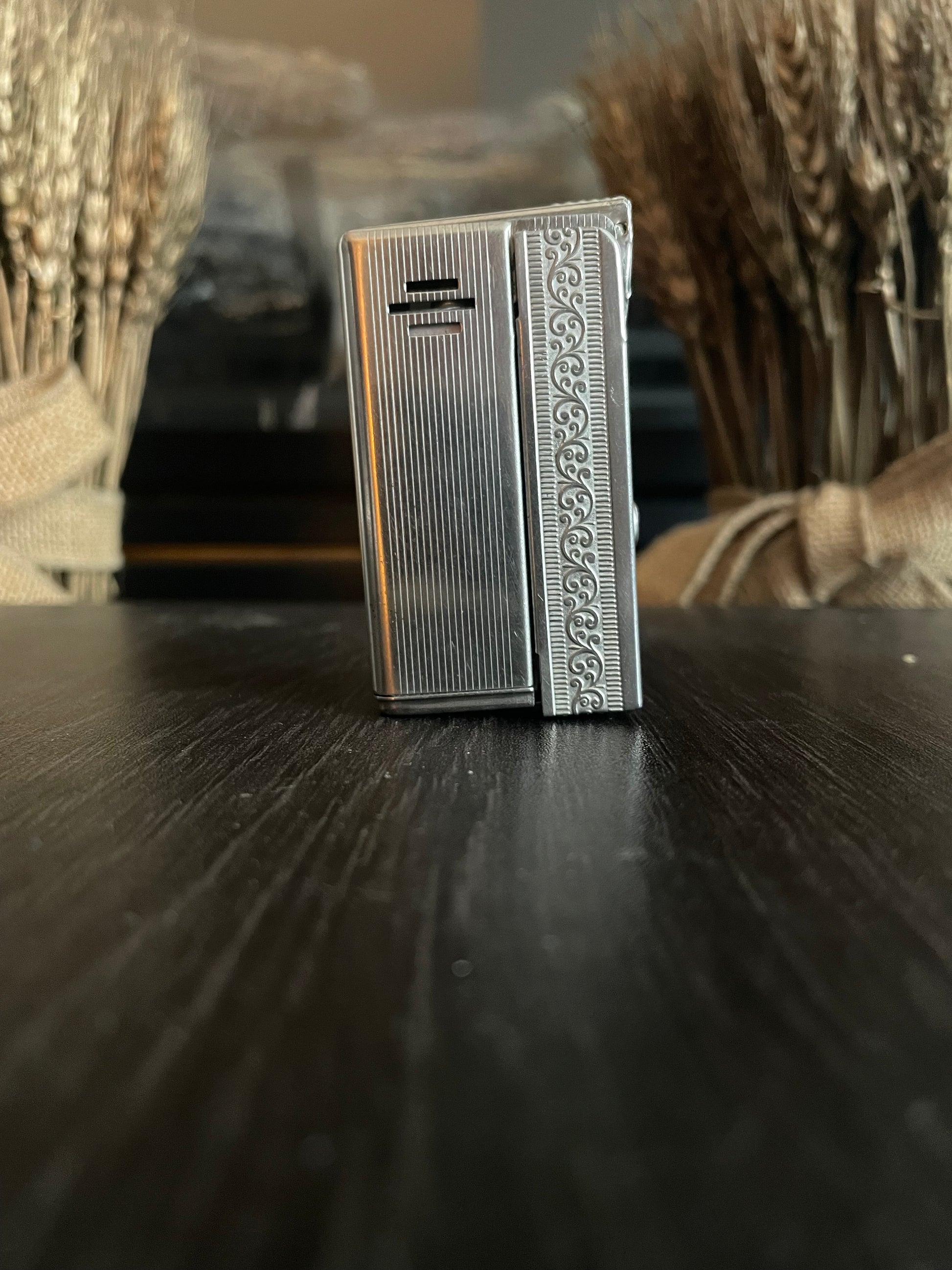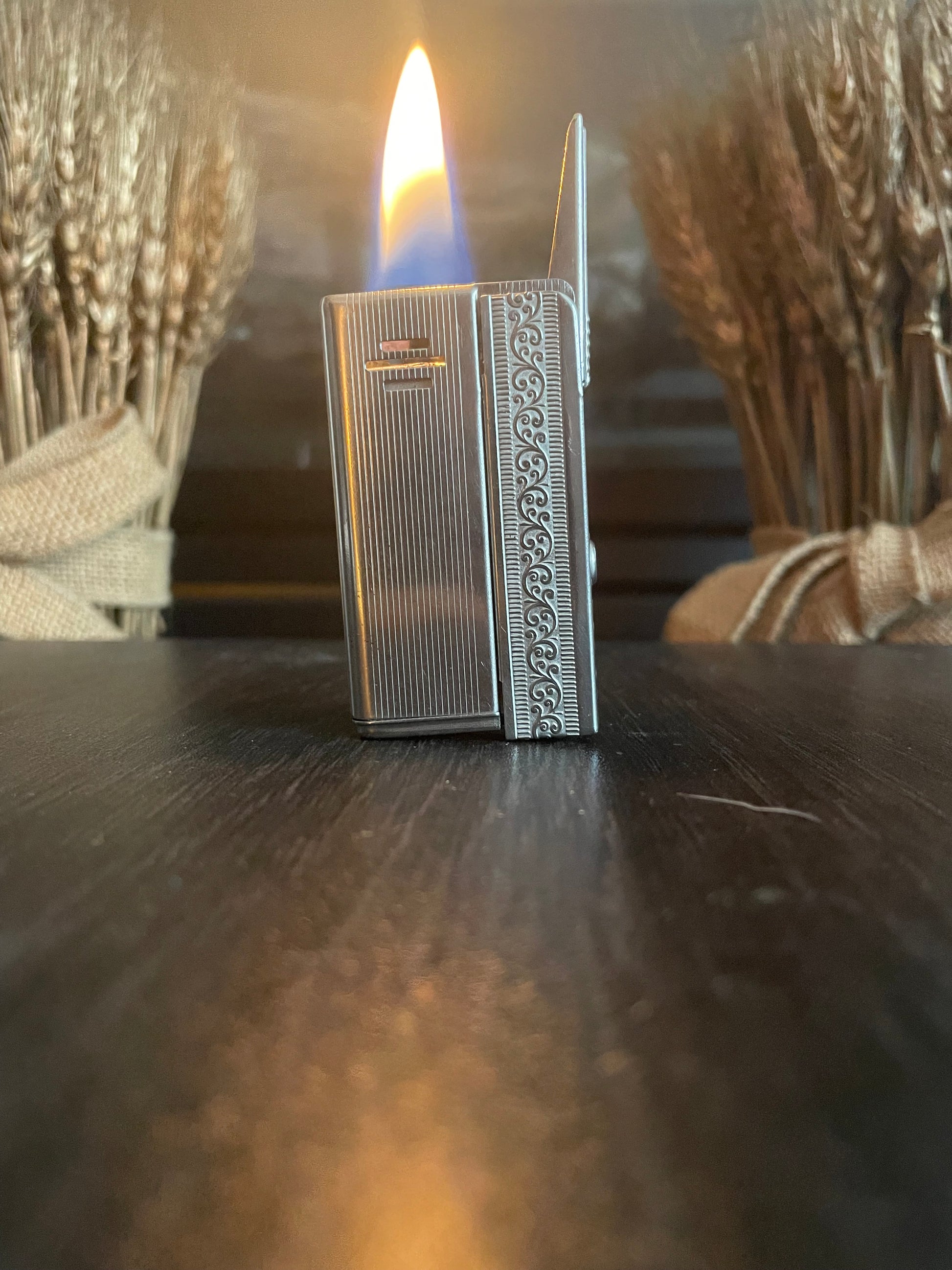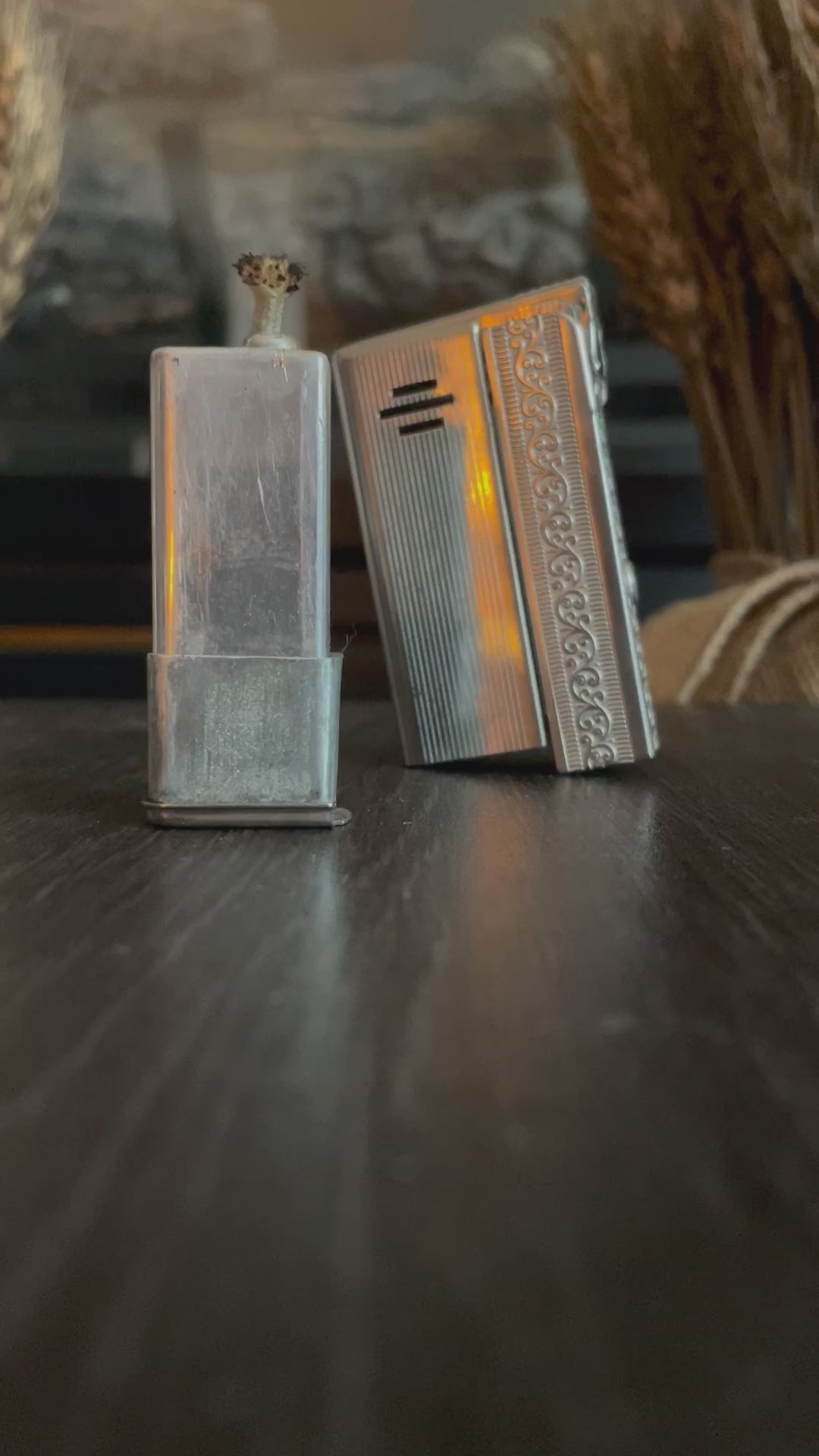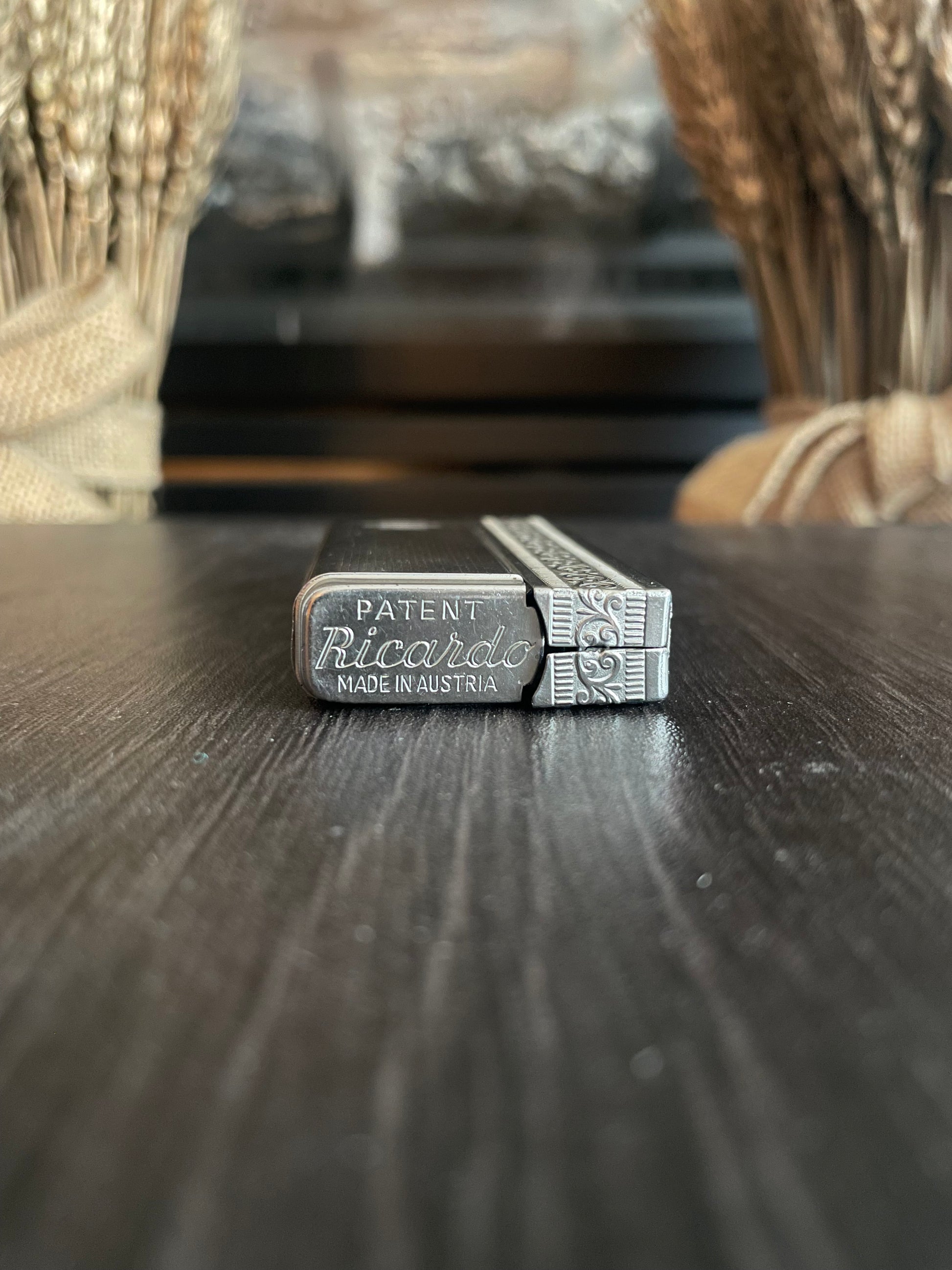 Introducing The Ricardo, a vintage lighter with a sleek semi-automatic design, handcrafted in Austria. Featuring a removable fuel cell, it not only lights up cigarettes, but can also double as a candle for a unique ambiance. Enjoy the nostalgia and convenience of The Ricardo.