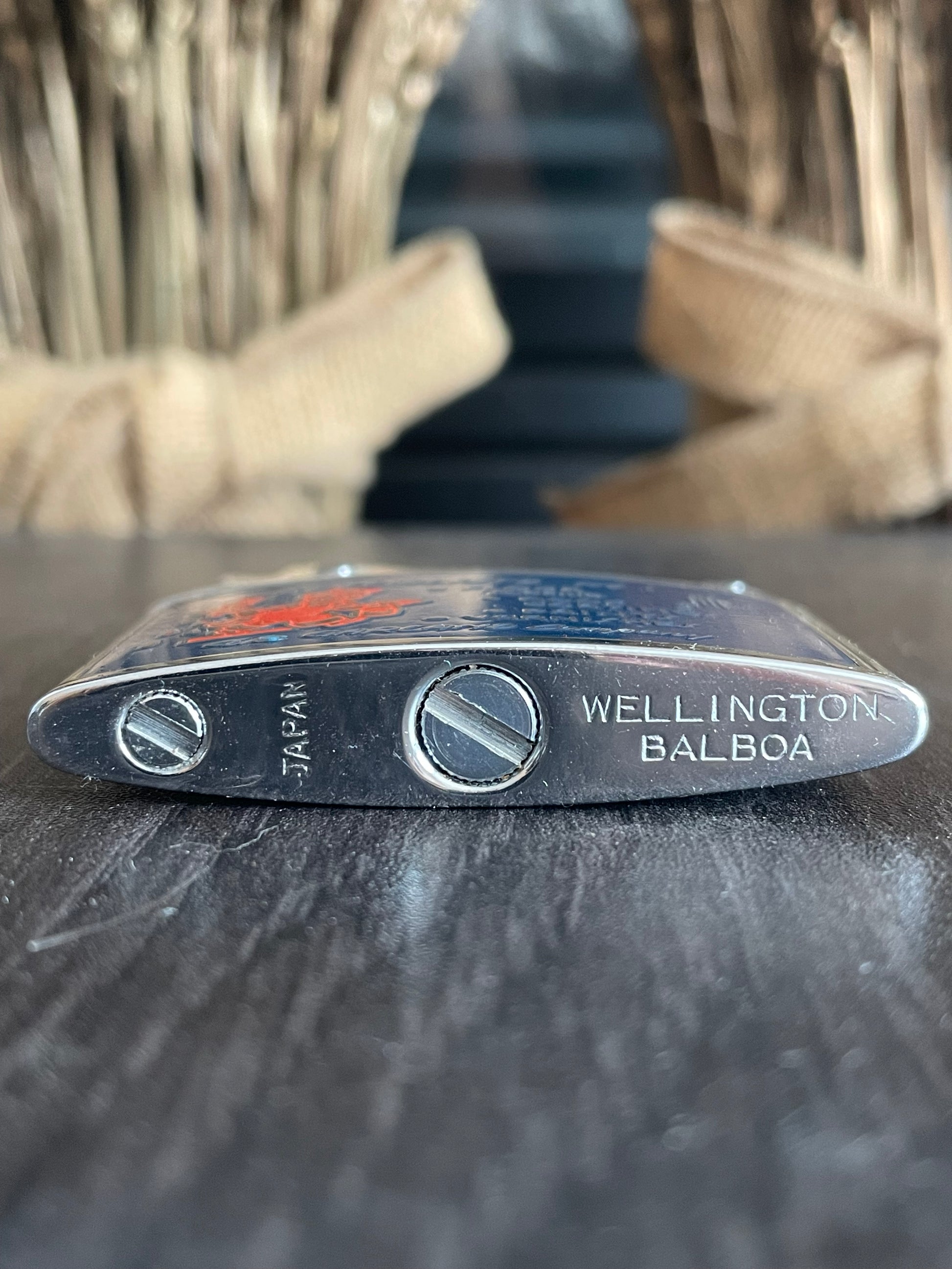 Experience the unique charm of the past with the Wellington Balboa Lighter. Crafted in Japan during the 60s, this beautiful piece boasts exceptional quality and condition. Originally advertised by the Garland Company in Ohio in 1895, it's a true treasure for lovers of vintage lighters.